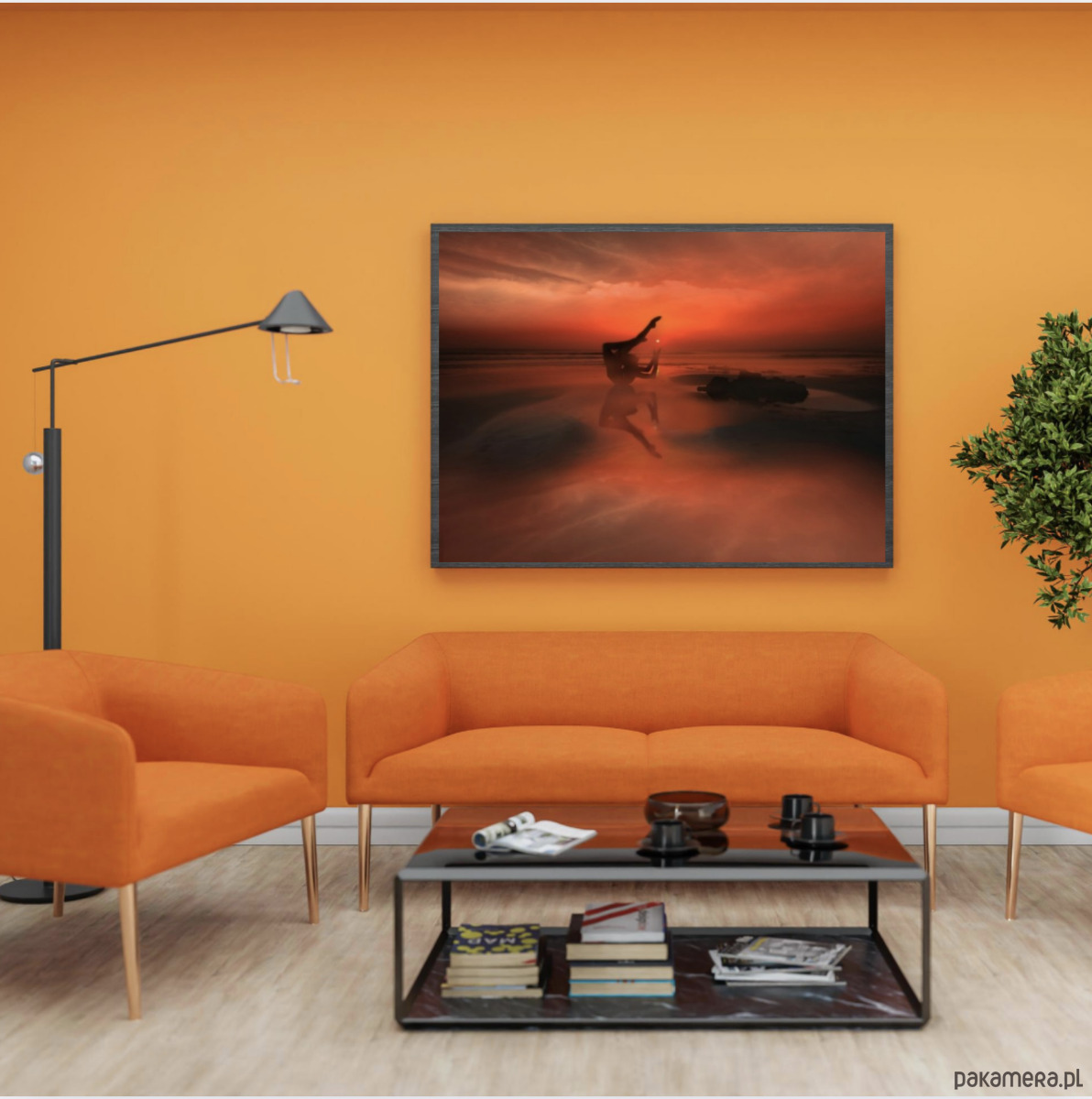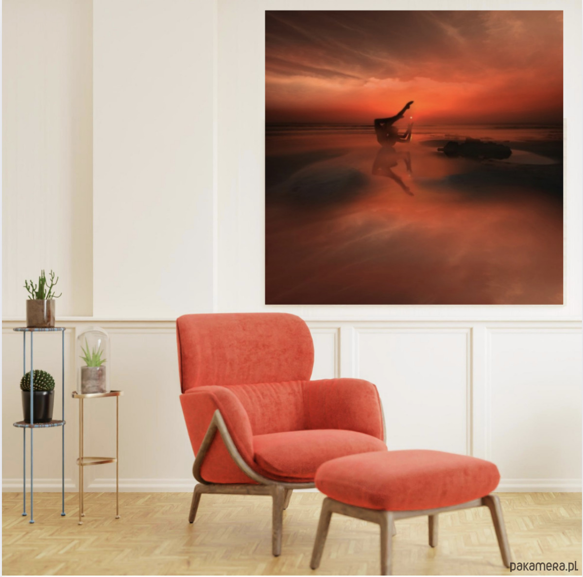Fotomanipulacja artystyczna na płótnie satynowanym 60x60 cm, gotowa do zawieszenia na ścianie -naciągnięta na solidny blejtram i utrwalona werniksem (mat lub piękny pół połysk satynowy), co daje dodatkowe zabezpieczenie przed urazami zewnętrznymi. Werniks w bardzo elegancki sposób wydobywa fakturę płótna, a pół połysk dodatkowo ożywia kolory. Dzięki werniksowi można obraz od czasu do czasu delikatnie przetrzeć na sucho z kurzu.