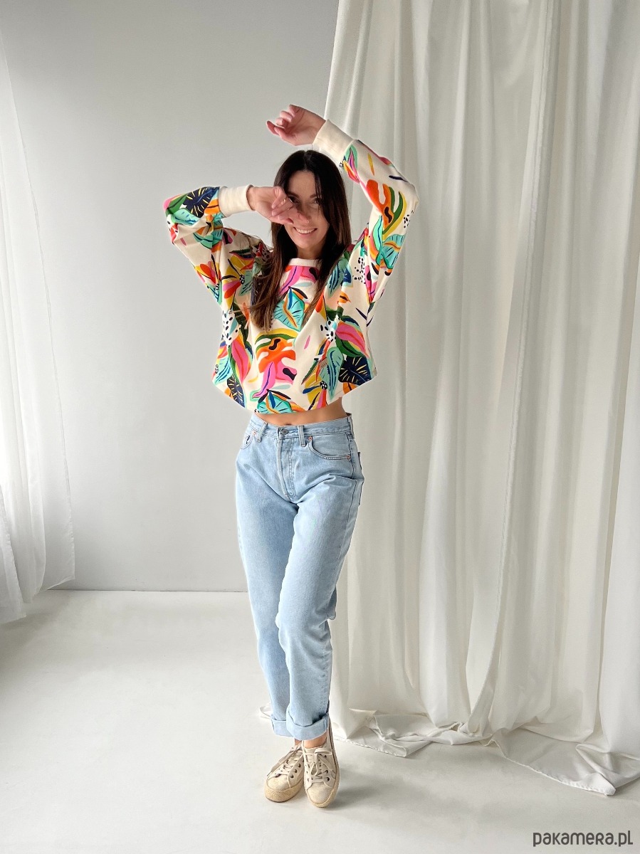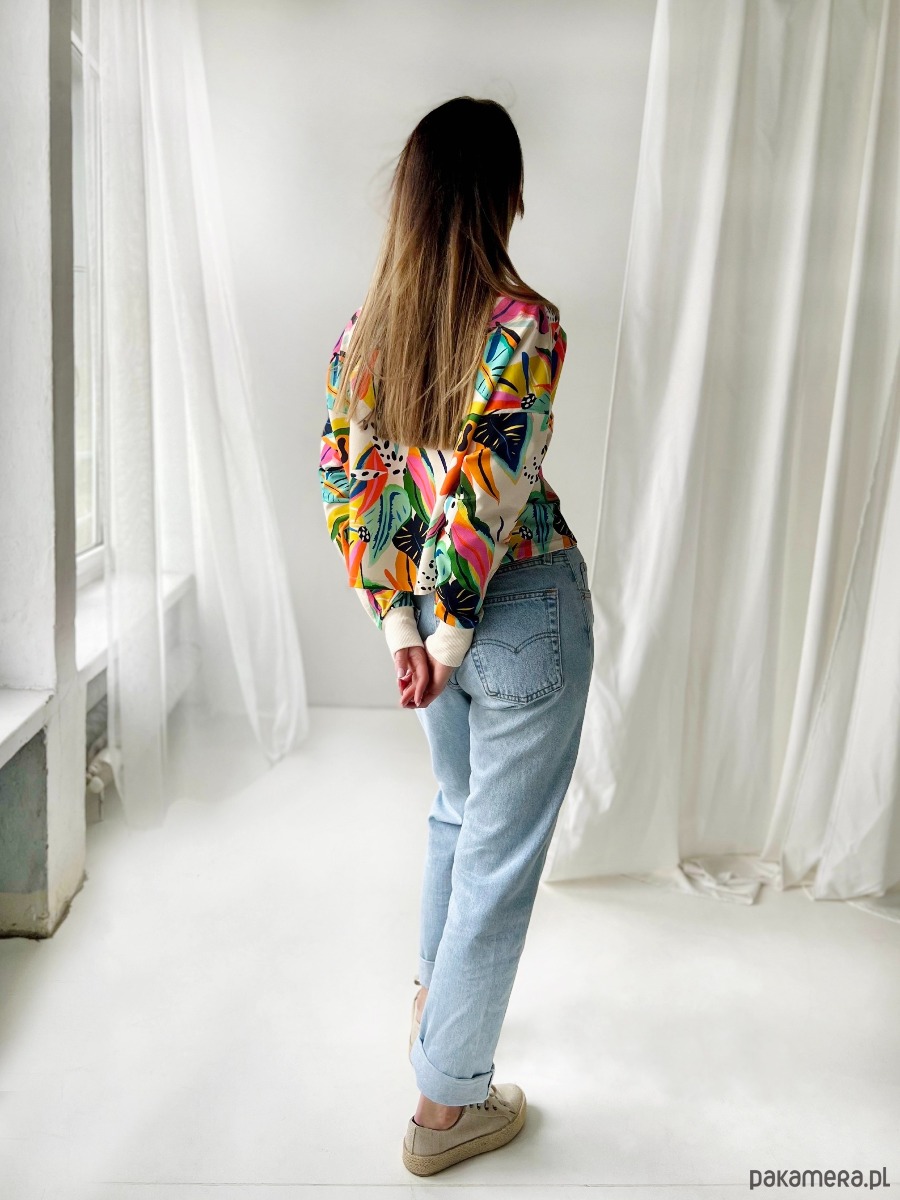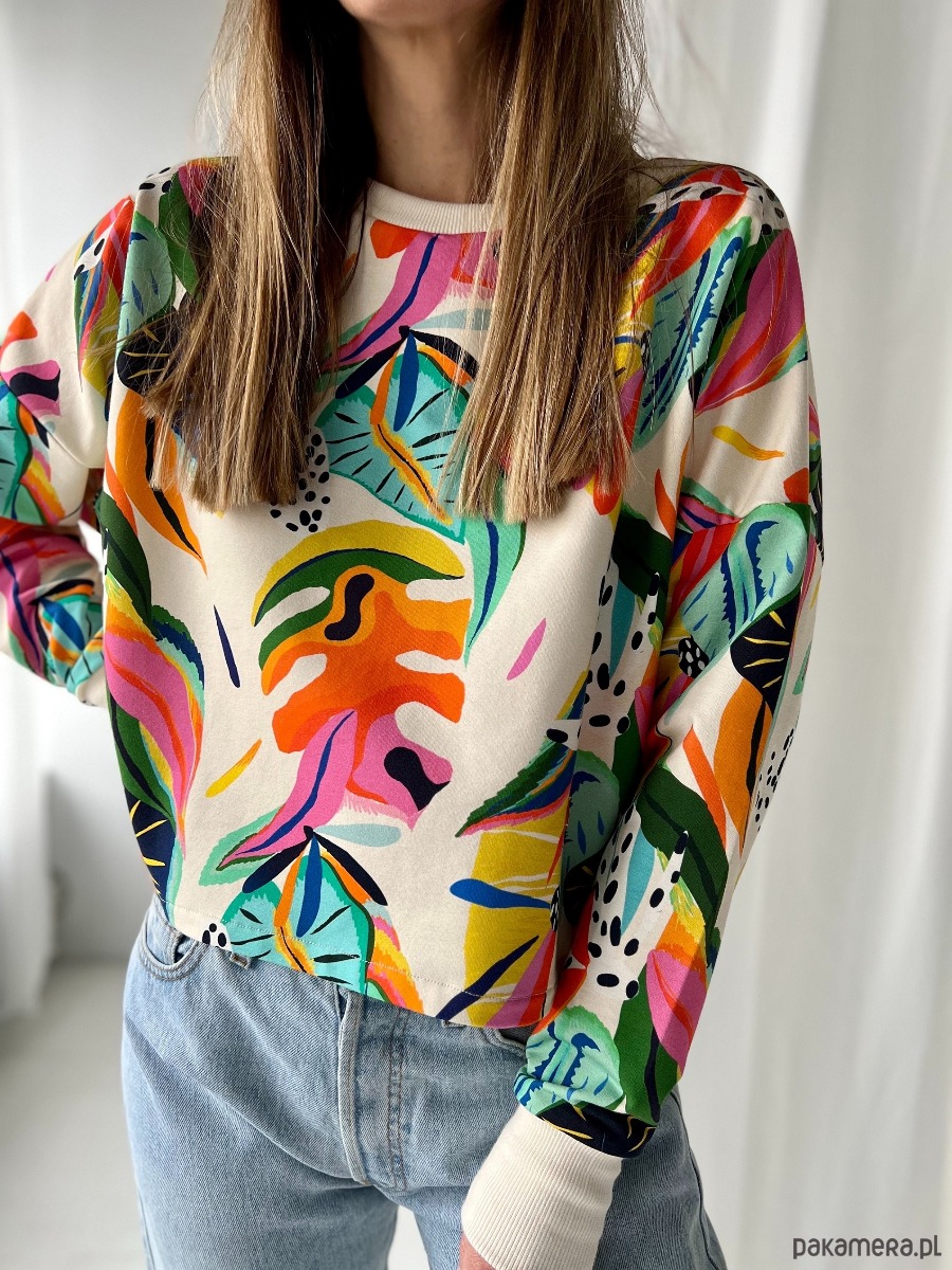 Kolorowa, kobieca, z prawdziwie soczystym printem przypominającym egzotyczną roślinność.