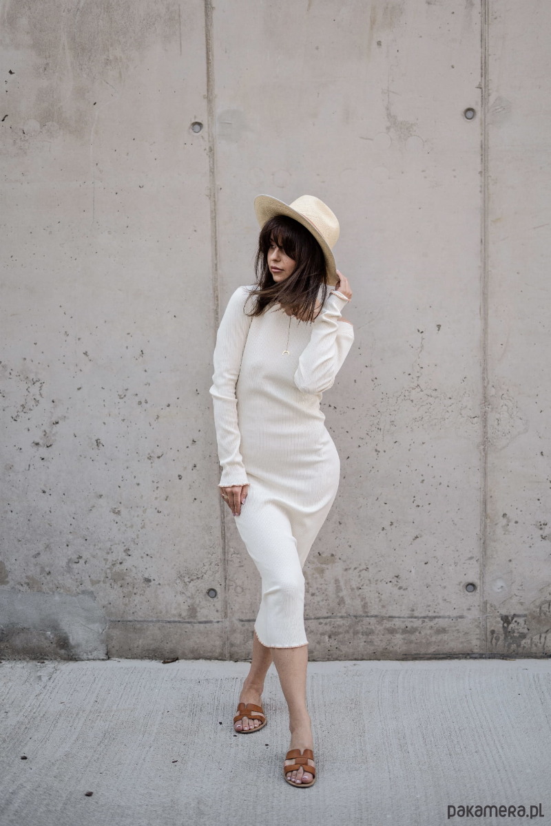 W tej sukience nie sposób się nie zakochać. Niezobowiązująca, ale ma w sobie to coś. Wykonana z prążkowanej bawełny w odcieniu kremowym.