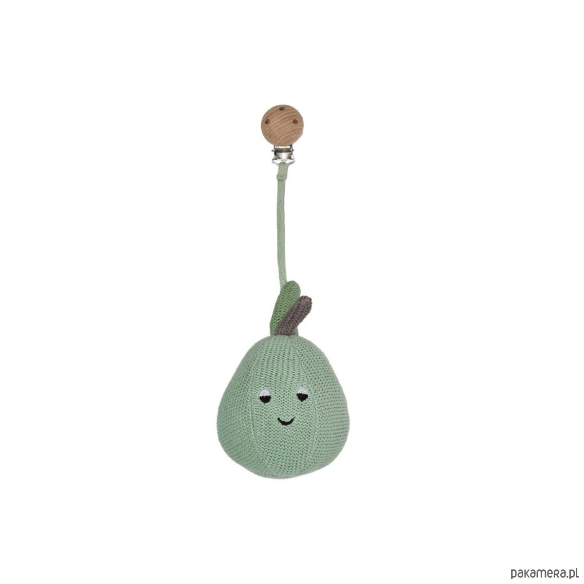 Uroczy klips do wózka Yummy Pear Klips do wózka Yummy Pear to doskonały dodatek, który wniesie urok i kolor do dziecięcego wózka. Wykonany z dzianiny OEKO-TEX, zapewnia nie tylko estetyczny wygląd, ale również bezpieczeństwo i komfort dla delikatnej skóry dziecka. Ilustracje Fun Foods w kształcie gruszki sprawiają, że klips ten staje się nieodłącznym towarzyszem każdego spaceru.