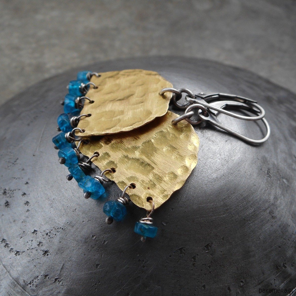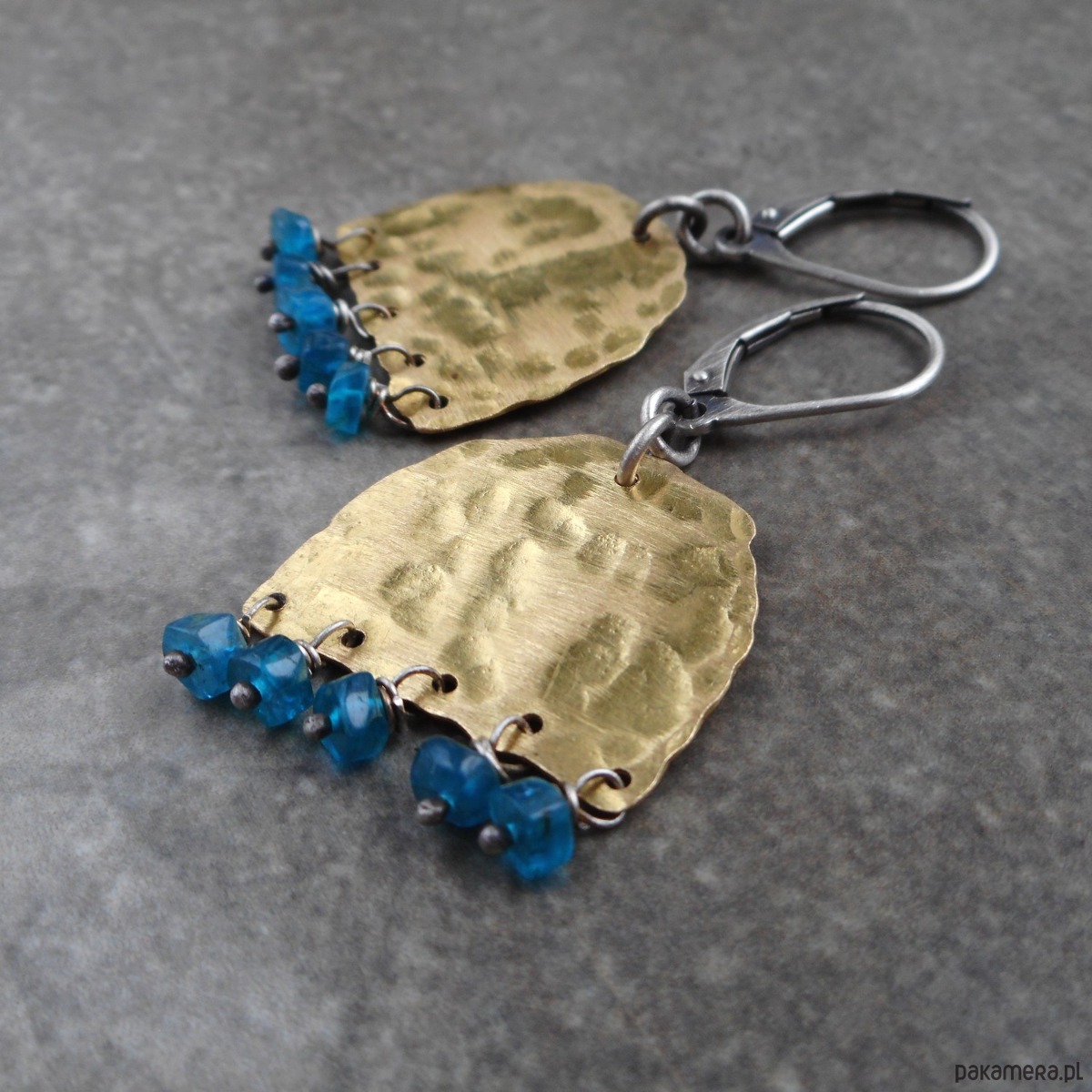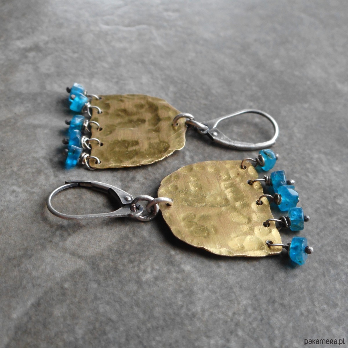 Kolczyki z kamieni naturalnych i szlachetnego srebra; nie obciążające ucha, wyraziste, w nieco surowym stylu.