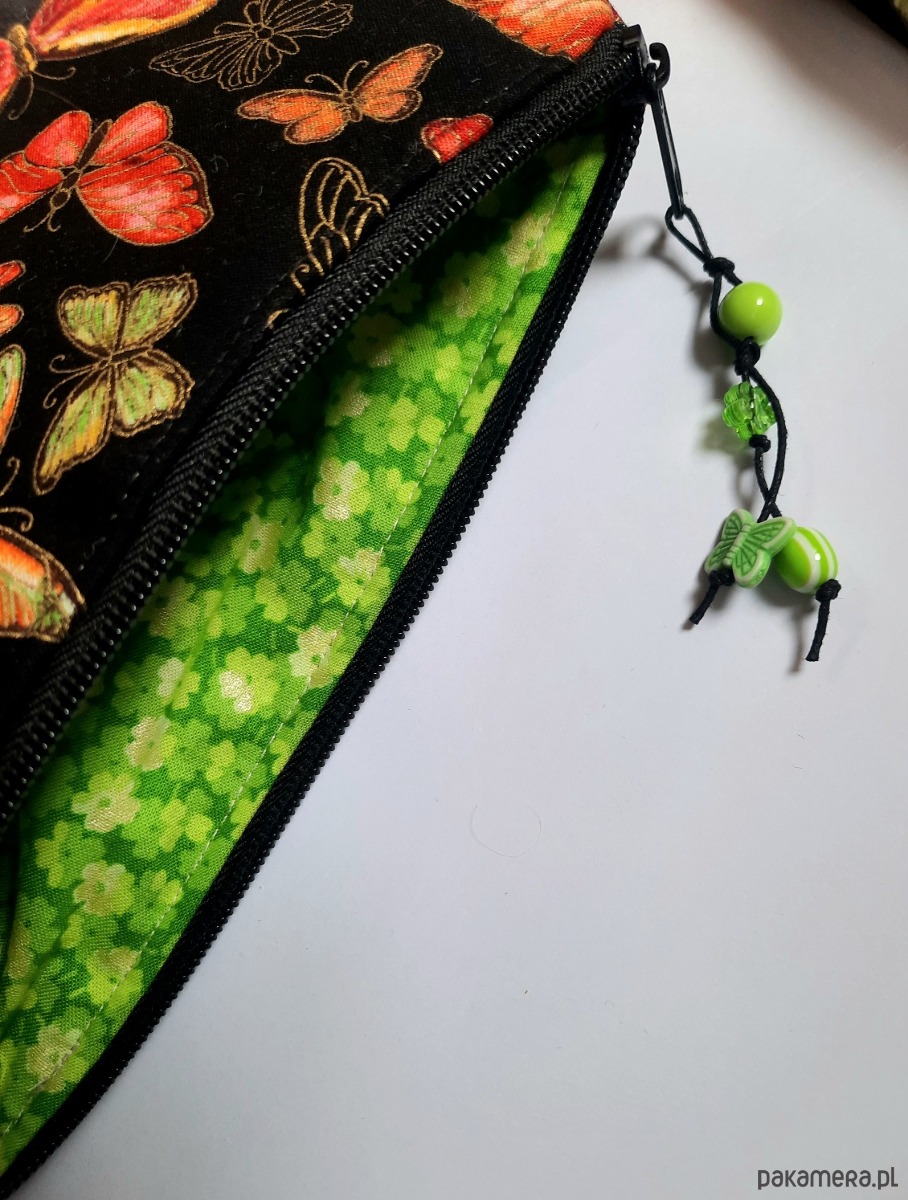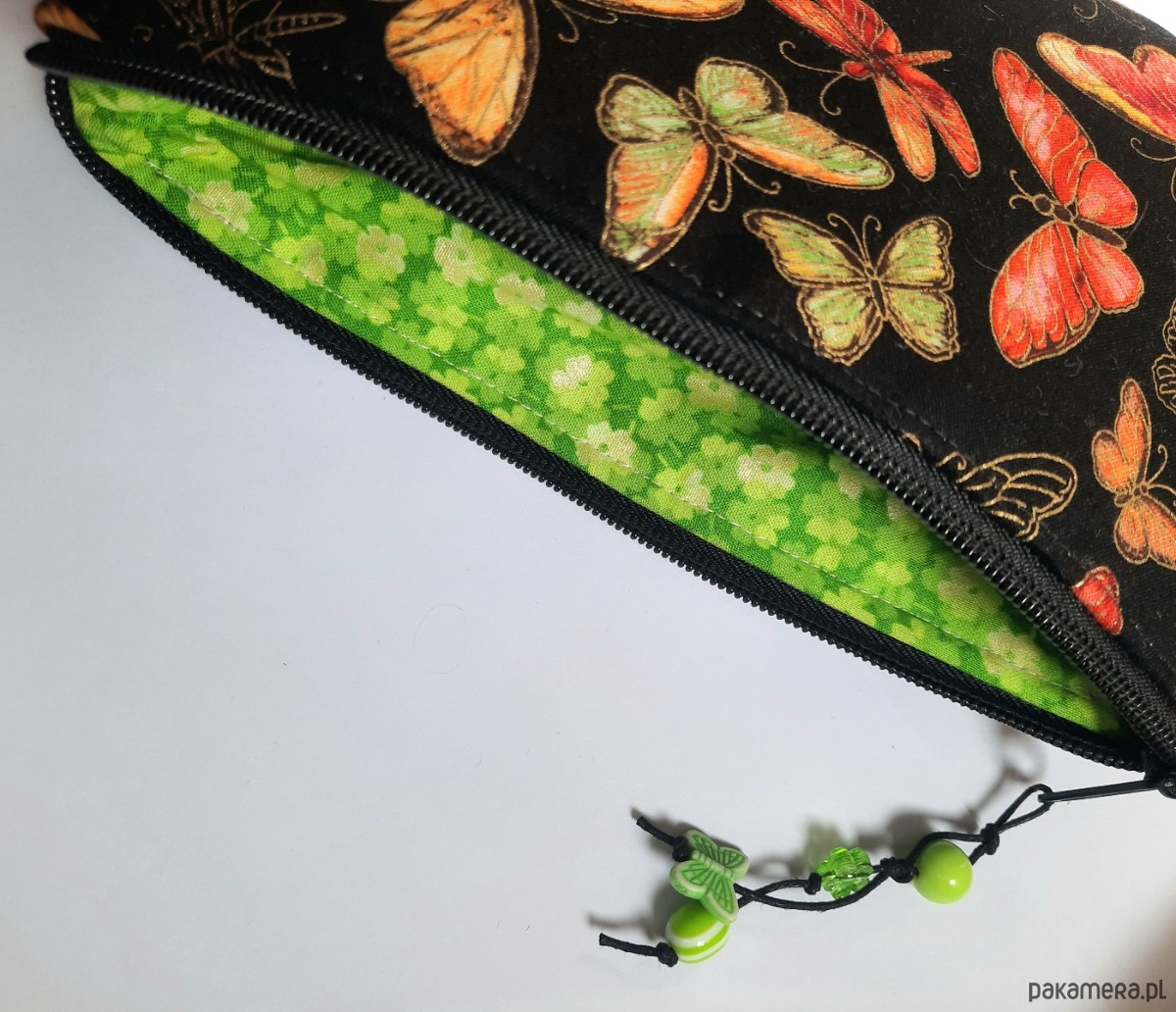 *Kosmetyczka jest usztywniona i dodatkowo szyta na ocieplinie, co dodaje jej objętości:) Zapinana na zamek. Wewnątrz dopasowana kolorystycznie podszewka.