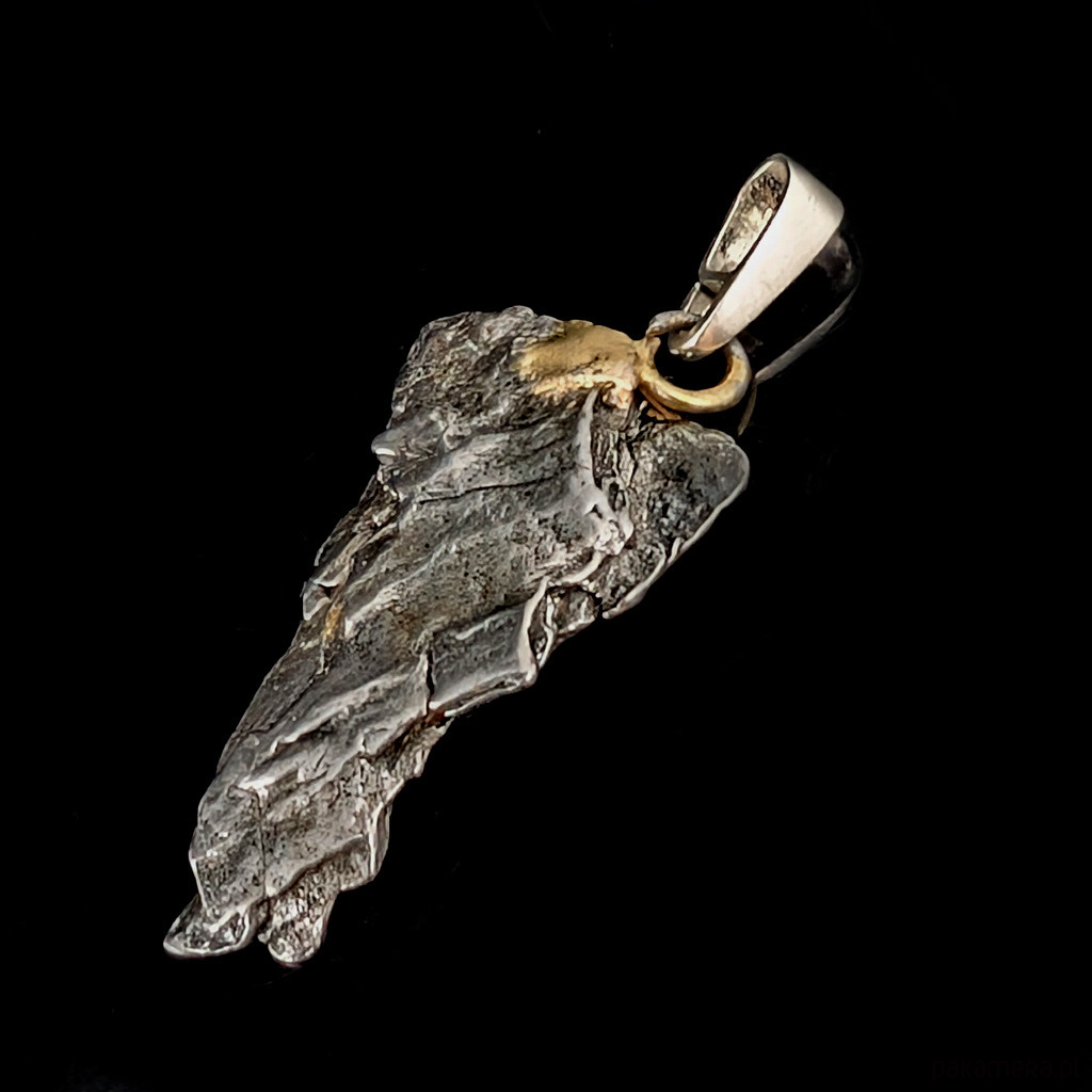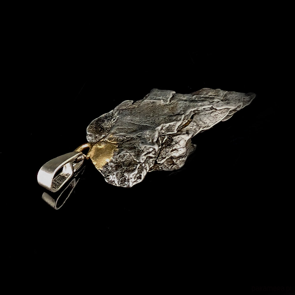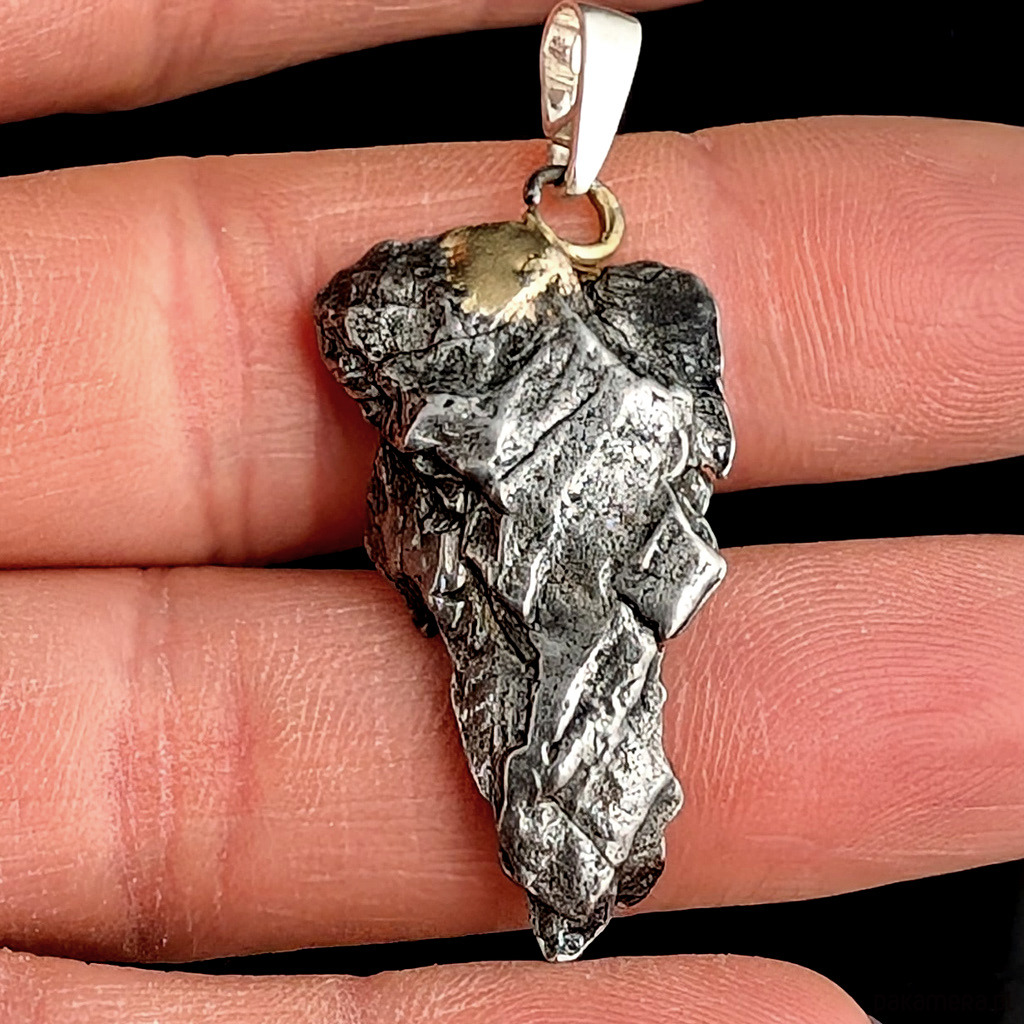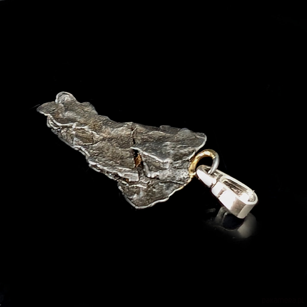 Wisiorek z meteorytem żelaznym Campo del Cielo, który znaleziono w 1576 roku w Argentynie. Krawatka srebro 925 Uniwersalny, dla niego lub dla niej. Wymiary 30 x 16 mm. Długość max 42 mm. Waga wisiora 7 g. Do meteorytu dołączona zostanie metryka z datą, miejscem spadku i wagą. Wisiorek zostanie zapakowany w ozdobne pudełeczko.