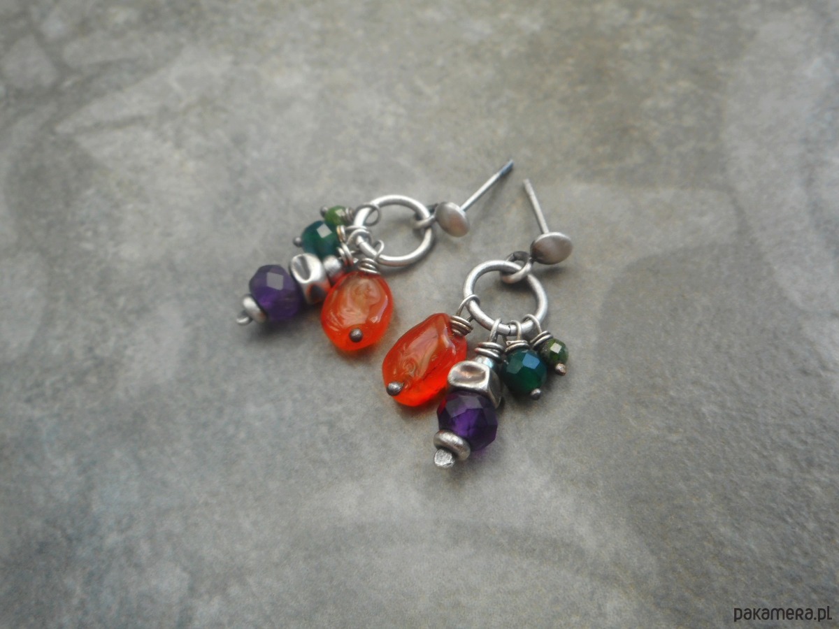 Niewielkie kolczyki z kamieni naturalnych i szlachetnego srebra, wygodne,lekkie, połączenie o srebra i kolorowych minerałów nadaje biżuterii niepowtarzalnego charakteru.