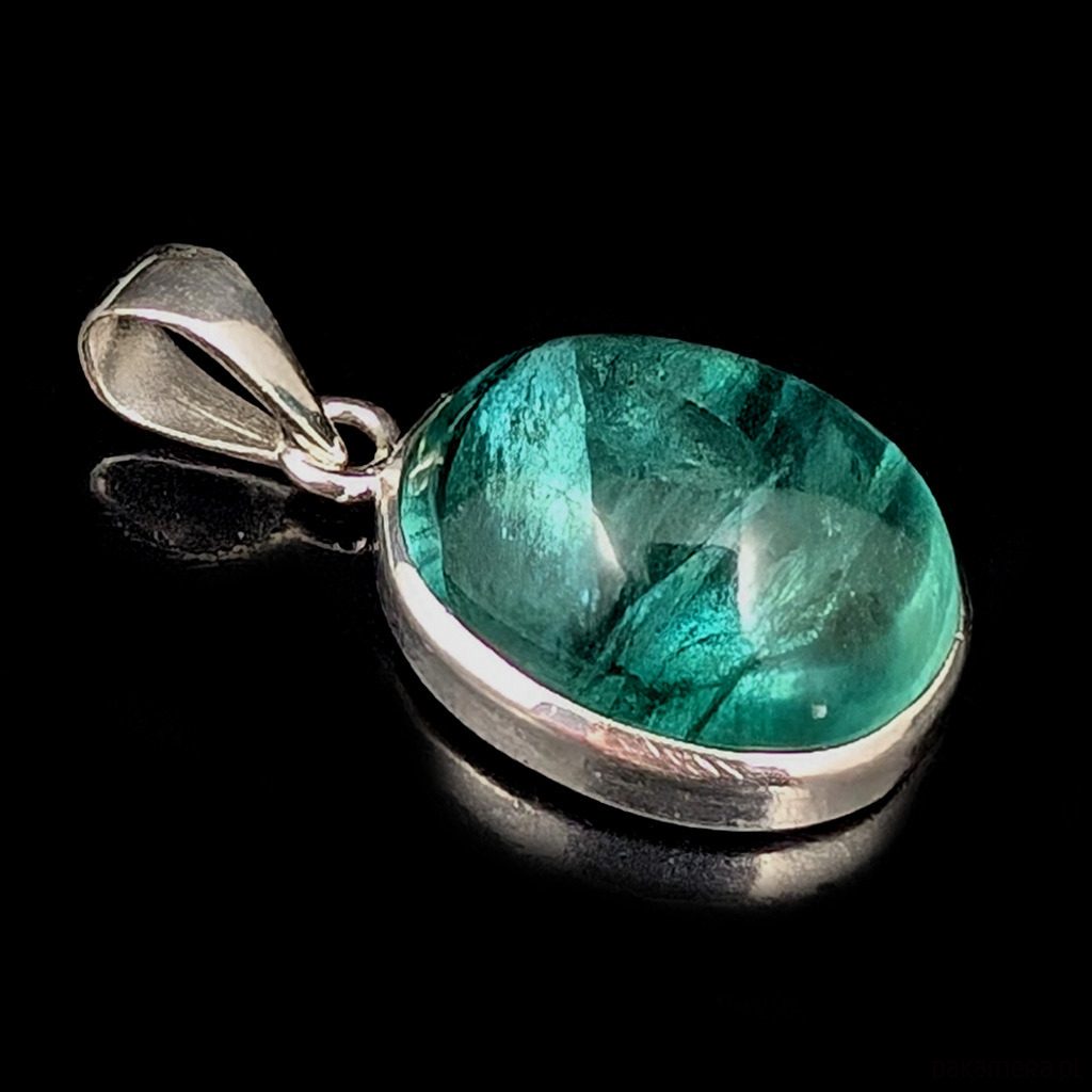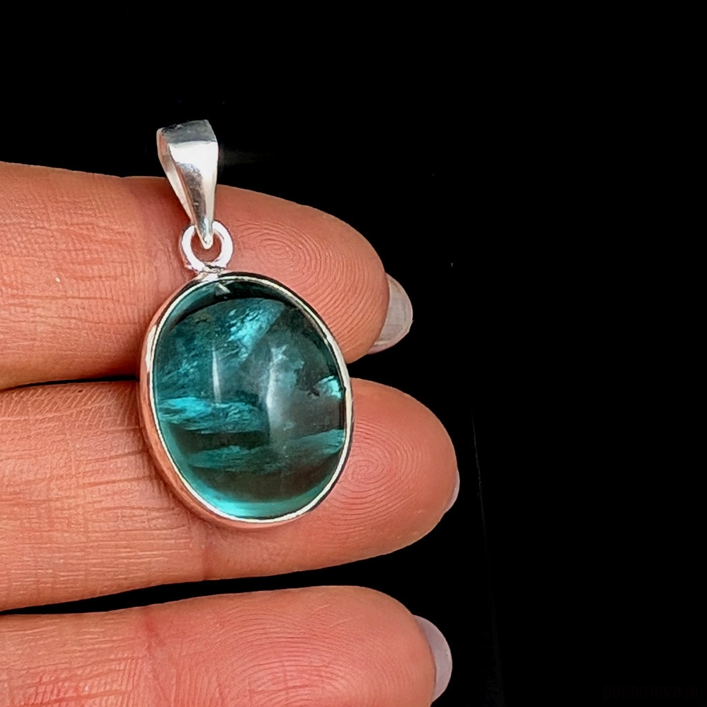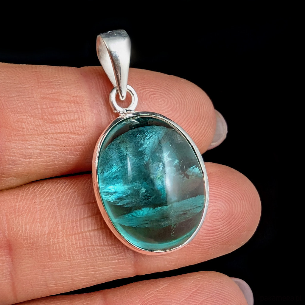 Wisiorek wykonany ze srebra próby 925 oraz naturalnego,przepięknego fluorytu o intensywnym, morskim odcieniu. Wymiary oprawy kamienia20 x 17 mm, szerokość obrączki 5 mm. Waga 8,5 grama. Wisior zostanie zapakowany w ozdobne pudełeczko.