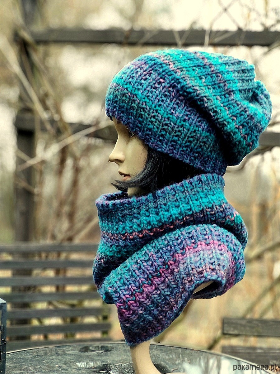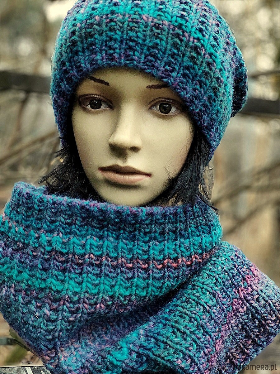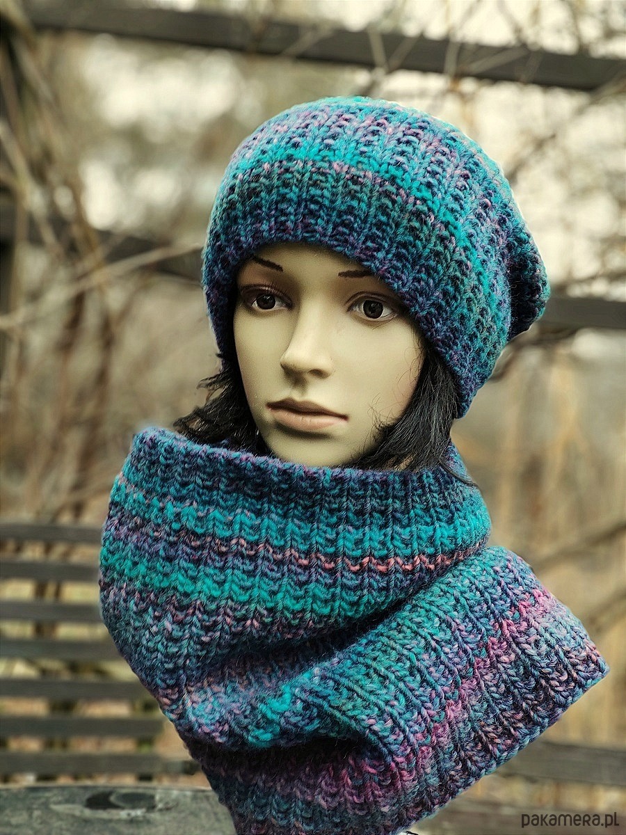 Czapka i komin są bezszwowe.