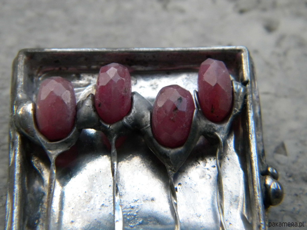 rubiny w oprawie z ocynowanej miedzi.