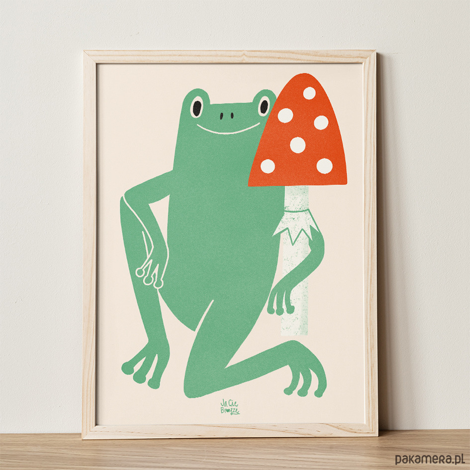 Leśna żaba z muchomorem. Trochę wygląda tak, jakby pozowała z nim do zdjęcia- bo pamiętamy, że muchomorów nie zrywamy! (ani tym bardziej nie jemy:)