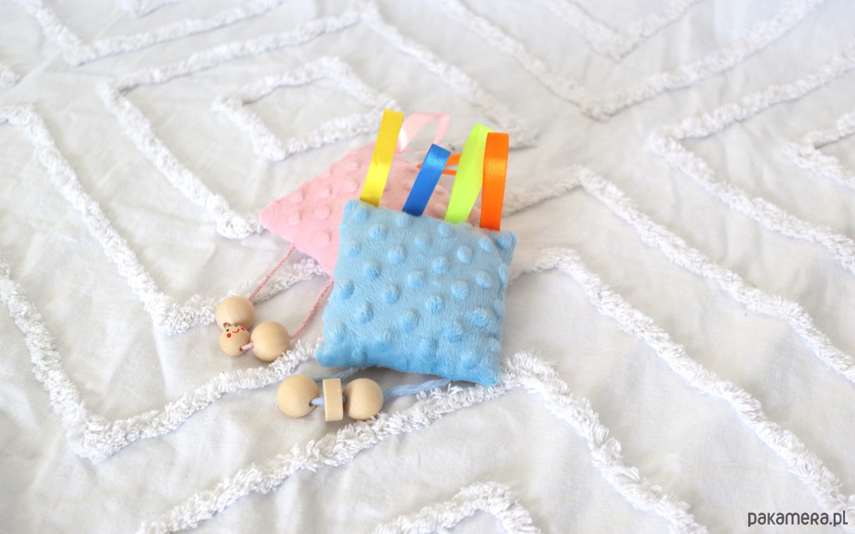 Różnorodność materiałów pozwala stymulować zmysł wzroku oraz dotyku w delikatny sposób.