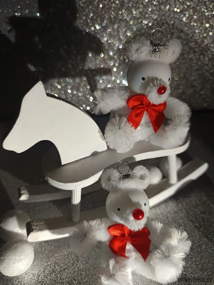 Zabawki choinkowe - misie polarne w stylu PRL, handmade, 2 szt.