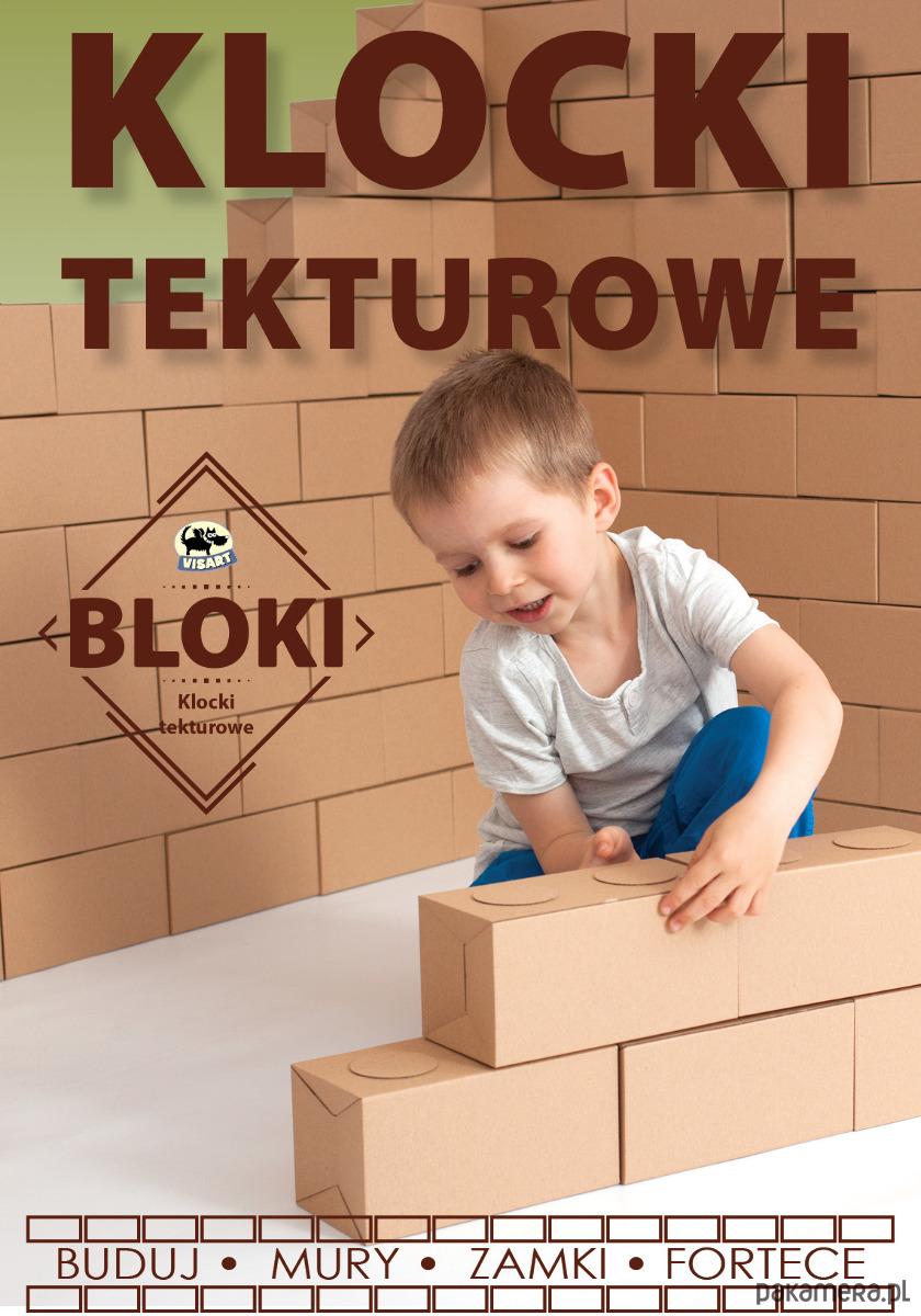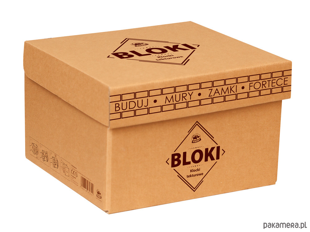 Lekkie, bezpieczne, ekologiczne klocki do samodzielnego, banalnie prostego składania. Żeby złożyć klocek, wystarczy wcisnąć zapadki na przeciwnych końcach klocka. Klocki Bloki można również wykorzystać do twórczego "dorosłego" budowania, ostatnie zdjęcie w galerii produktu pokazuje "prawdziwą" ścianę w sklepie Dwakoty w Warszawie wybudowaną (na klej) z klocków Bloki. Opakowanie zawiera 68 klocków 10x10x20 cm oraz 8 klocków 10x10x10 cm. Można z tej ilości zbudować 1.44 m2 ściany. Wszystko mieści się w pudełku 33x30x22 cm.