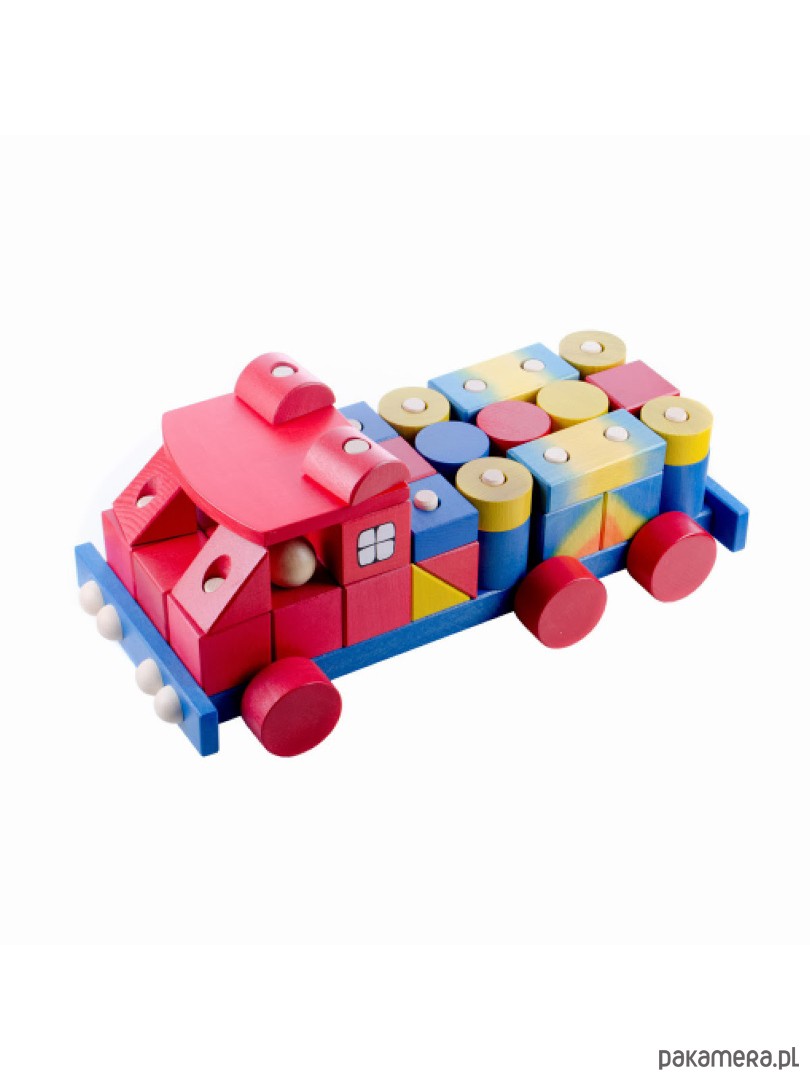 Zabawa polega na zbudowaniu z drewnianych klocków ciężarówki. Na zestaw składa się w sumie 42 elementy, z których można złożyć samochód na wiele różnych kombinacji. Drewniane klocki rozwijają koordynację wzrokowo- ruchową, kształtują kreatywność i umiejętność koncentracji, a ponadto są naturalną ozdobą pokoju dziecięcego. Klocki pasują do innych układanek firmy Tarnawa. Uwaga: Ponieważ wszystkie artykuły są wytwarzane i malowane ręcznie, charakteryzują się niepowtarzalnością i mogą się między sobą nieznacznie różnić. Zabawka dla dzieci od 2 roku życia. Rozmiar: 44,5 x 21 x 17,5 cm Skład: 100% drewno