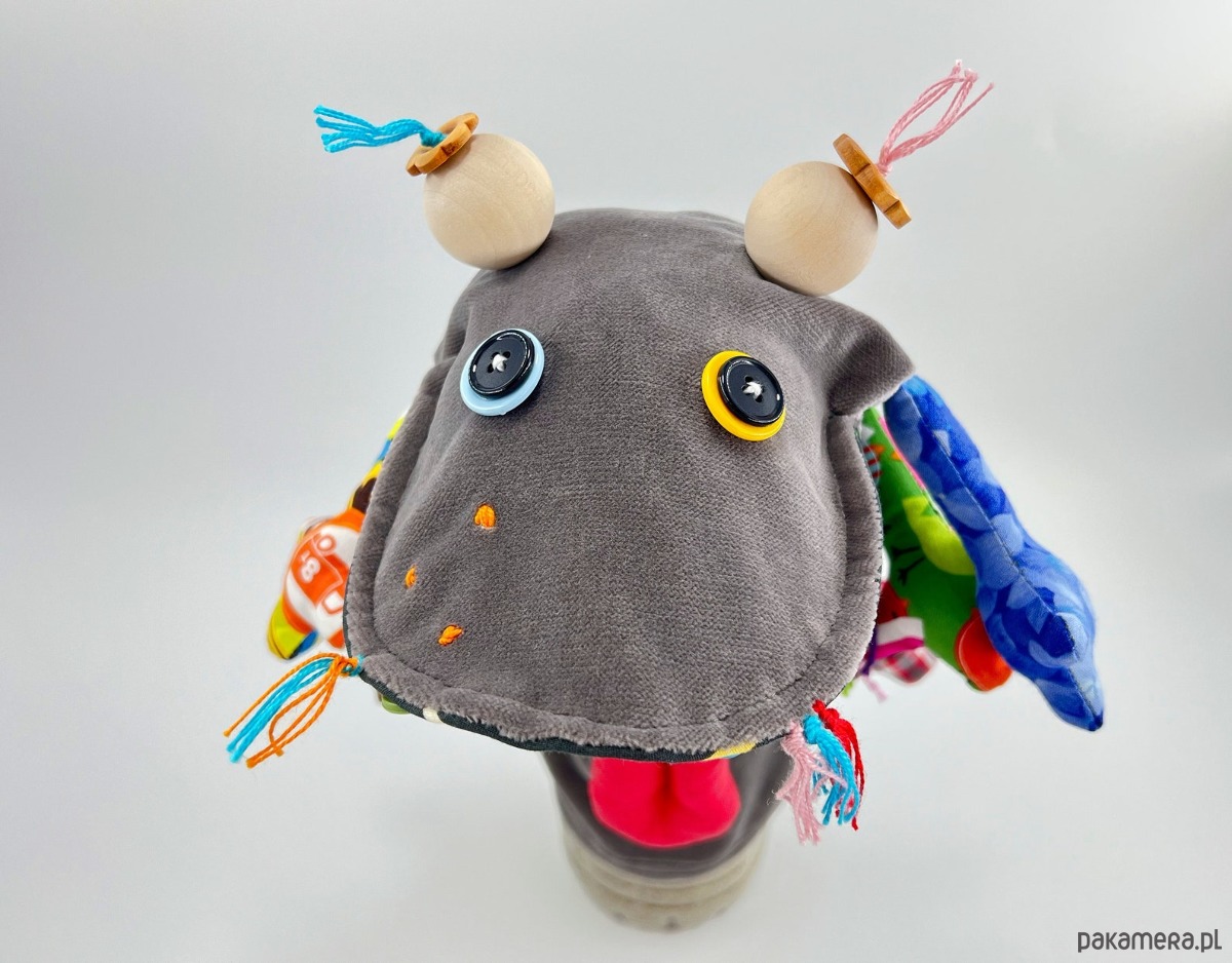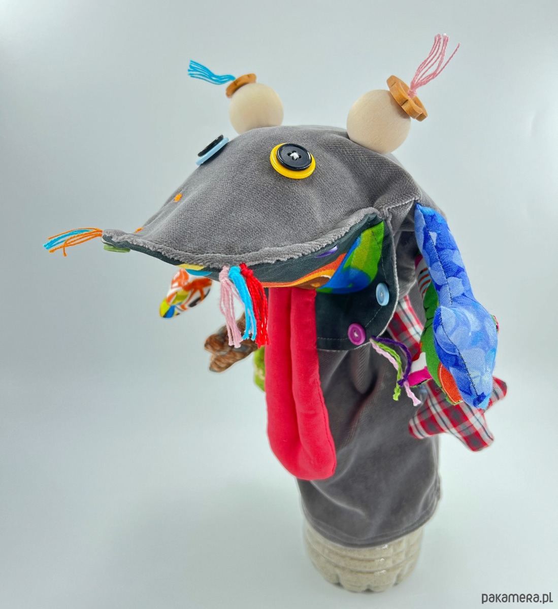 Pacynka jest tak uszyta aby zarówno dziecko jak i dorosły mogło nią łatwo animować.