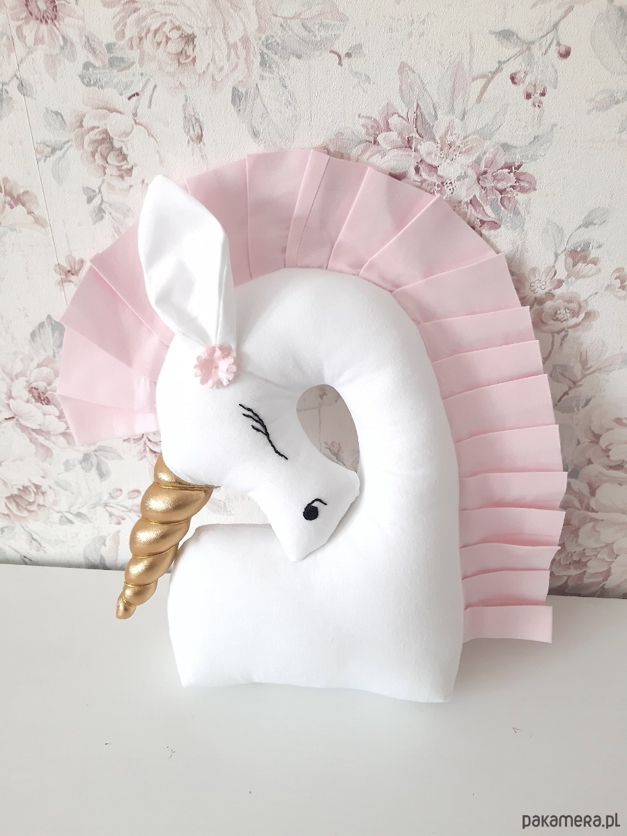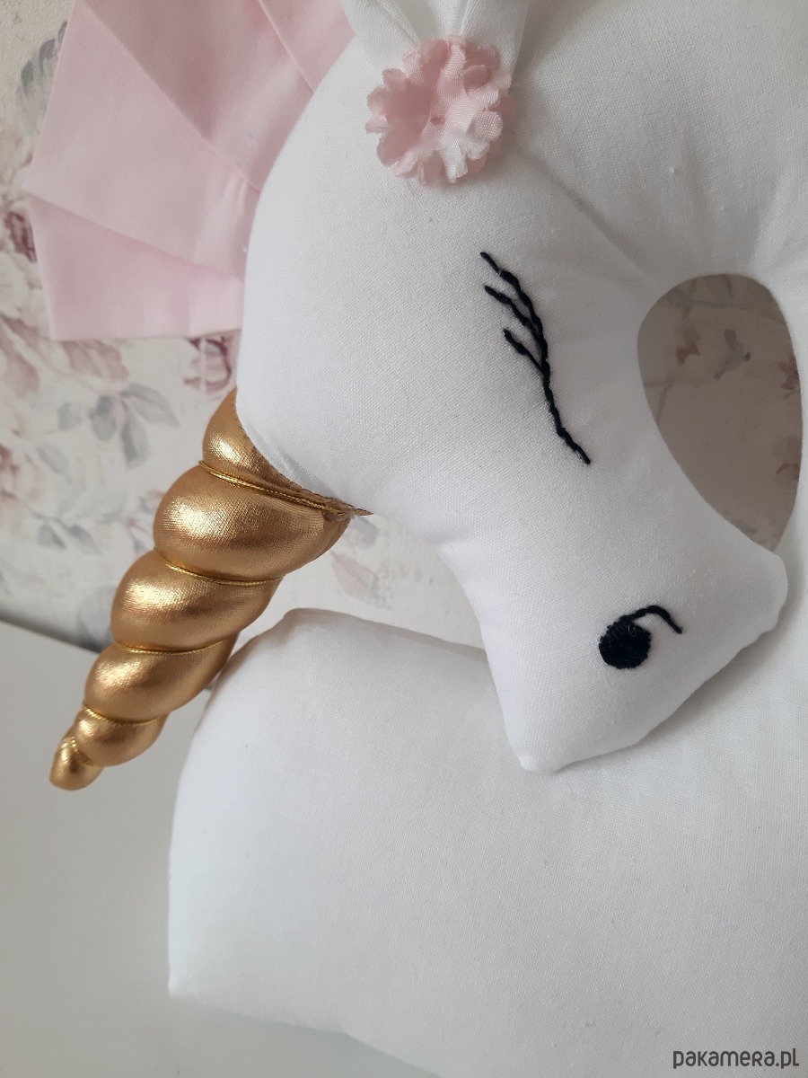 Urocza poduszka jednorożec posiada charakterystyczny róg, który zachwyci każdą fankę jednorożców.
