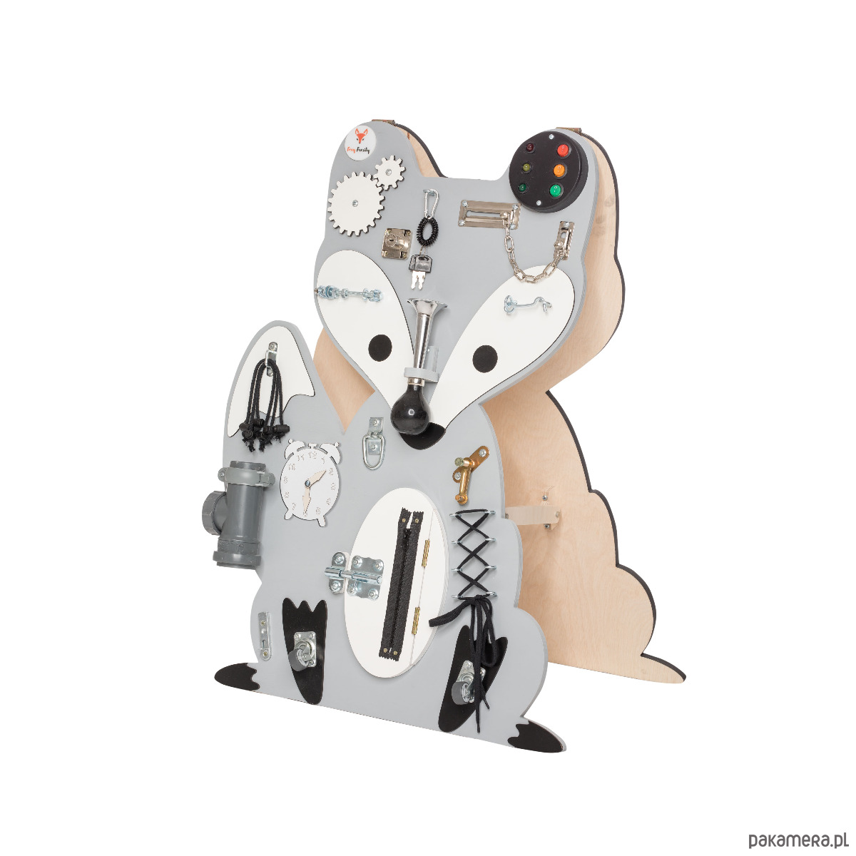 Tablica została wykonana ze sklejki liściastej i pomalowana ekologiczną oraz przyjazną dzieciom farbą, rekomendowaną przez Polskie Towarzystwo Alergologiczne.