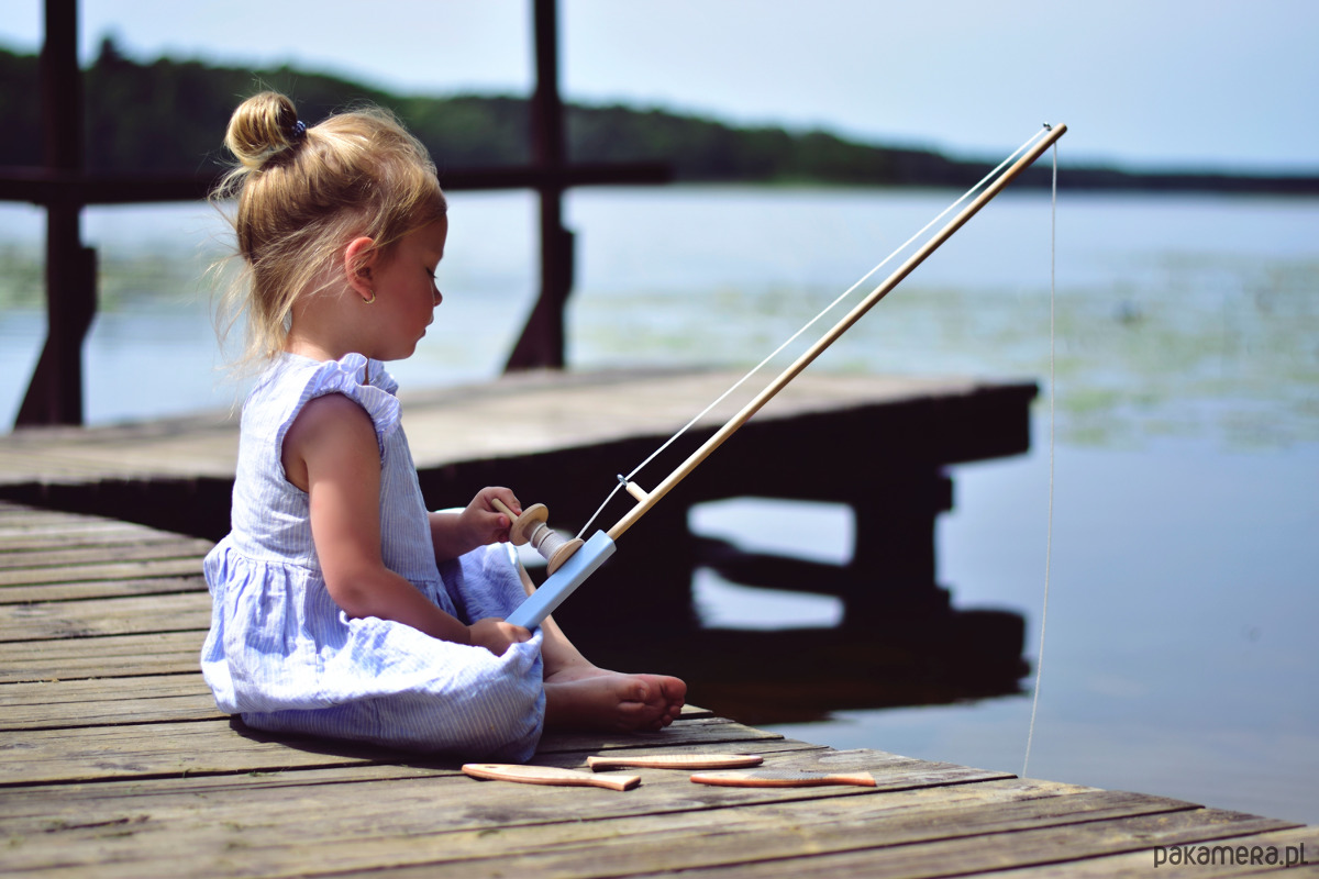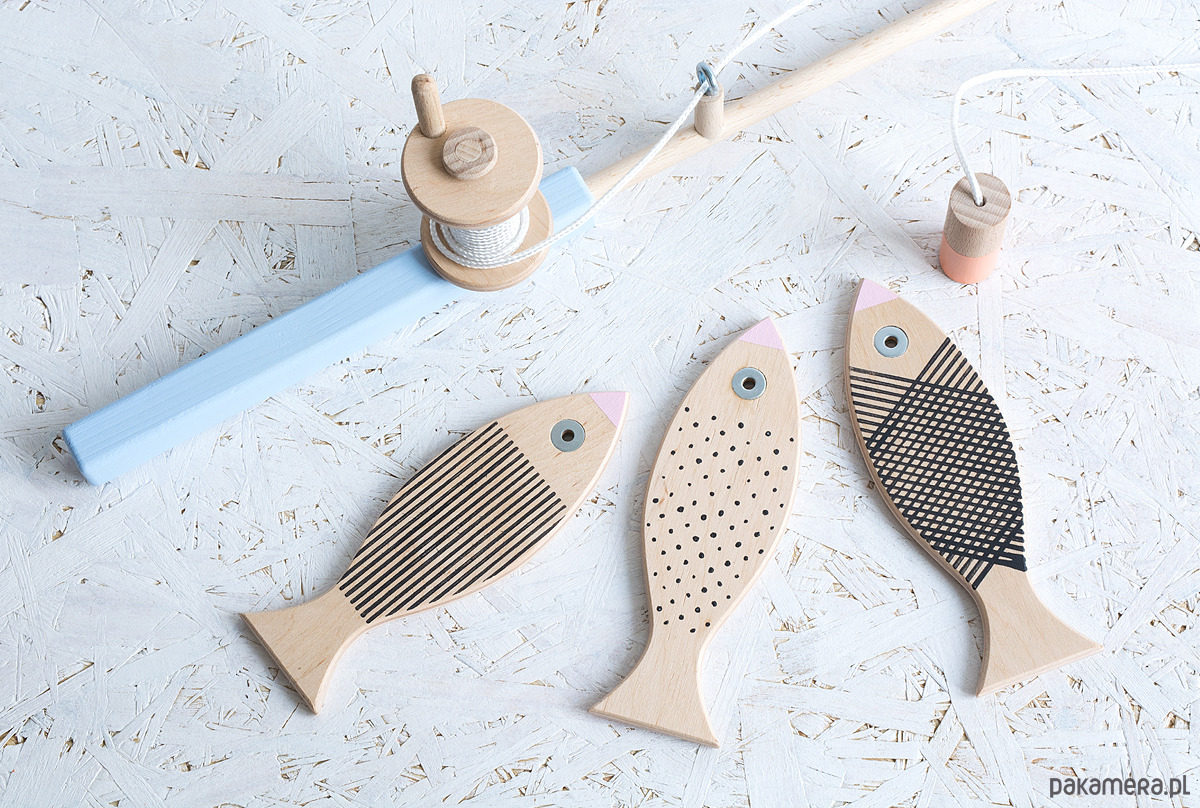 Jest to zabawka zręcznościowa, pozwalająca rozwijać koordynację ruchową dziecka. Aby złowić rybę dziecko musi wycelować za pomocą magnetycznego spławika na wędce w stalowe oczko. Dzięki nawijaniu sznurka na kołowrotek może podnosić i opuszczać zdobycz. Wędka może chwytać również inne stalowe drobiazgi. Wykonane z naturalnego drewna, ręcznie malowane.