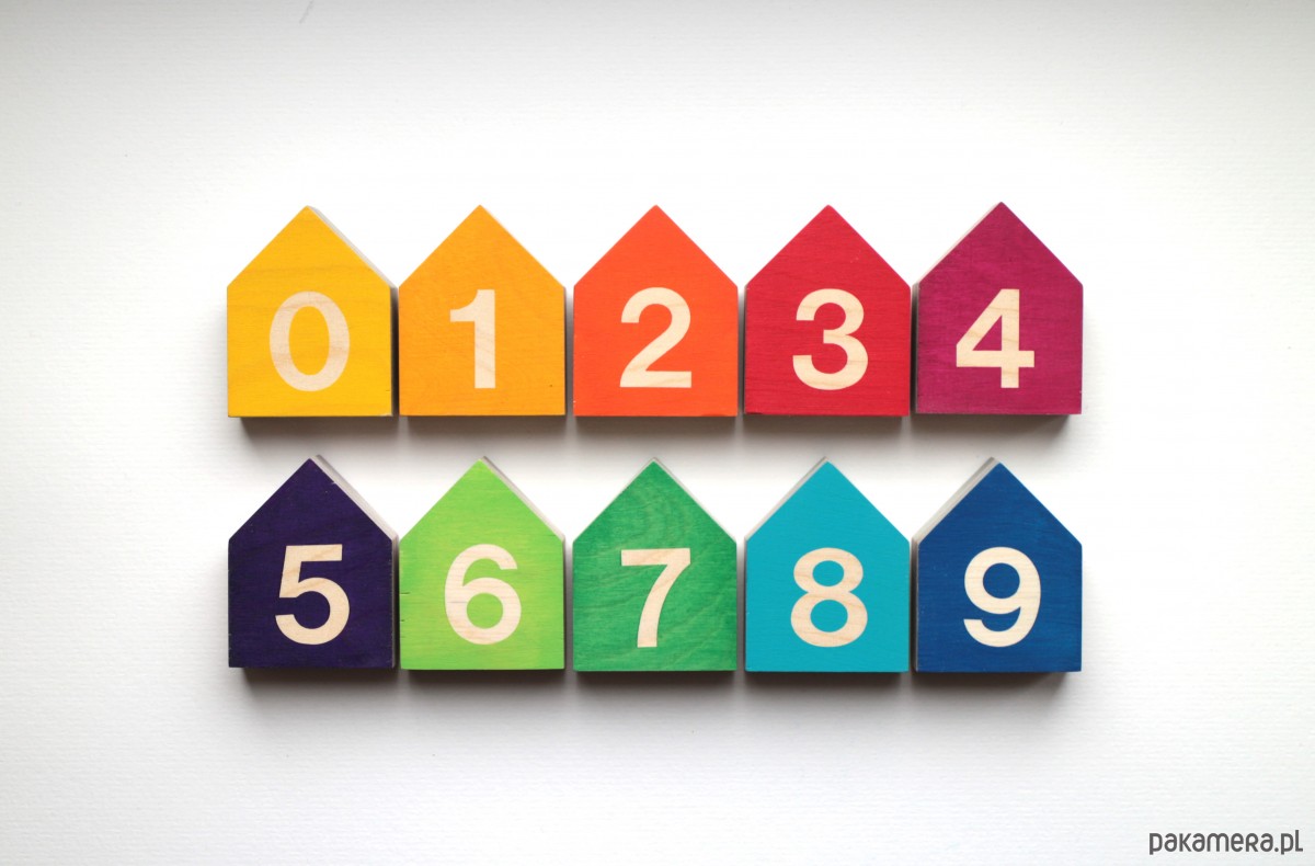 Zestaw 10 kolorowych domków - cyferek od 0 do 9 wykonanych ze sklejki. Idealne do nauki liczenia dla maluszków. Każdy domek jest w innym kolorze, przez co nauka kolejności cyferek stanie się łatwiejsza lub też wzbogacona o naukę kolorów. Dodatkowo domki mogą posłużyć jako zabudowania przy zabawach ulicami. Po skończonej zabawie będą stanowić idealna ozdobę pokoju dziecięcego :-)