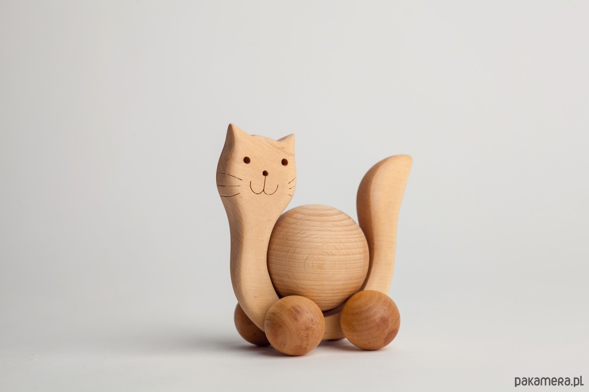 Przedmiotem sprzedaży jest drewniany kotek, który wprowadzony w ruch, zabawnie kręci brzuszkiem.