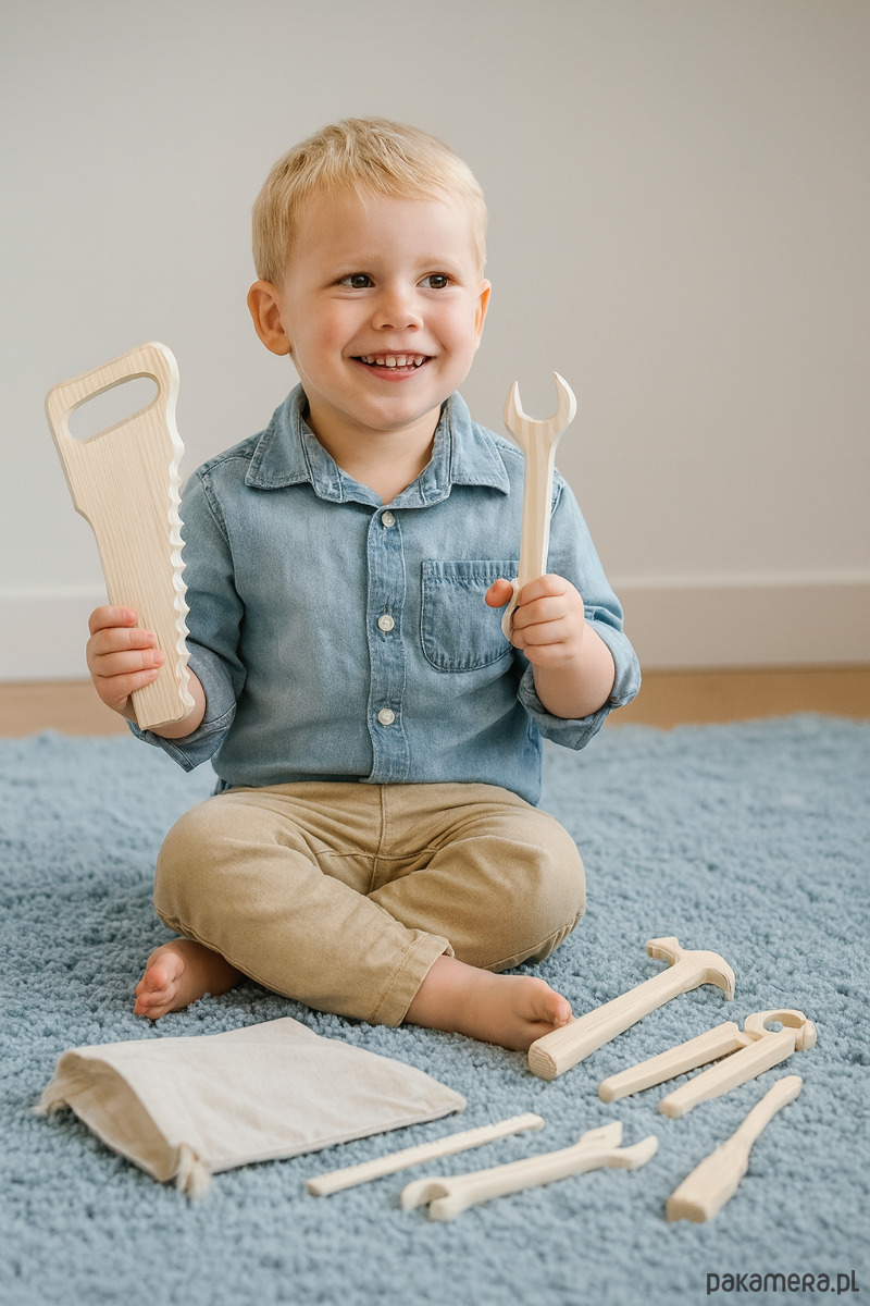 Drewniany zestaw narzędzi narodził się z miłości do wyobraźni i kreatywnej zabawy dla małych dzieci.