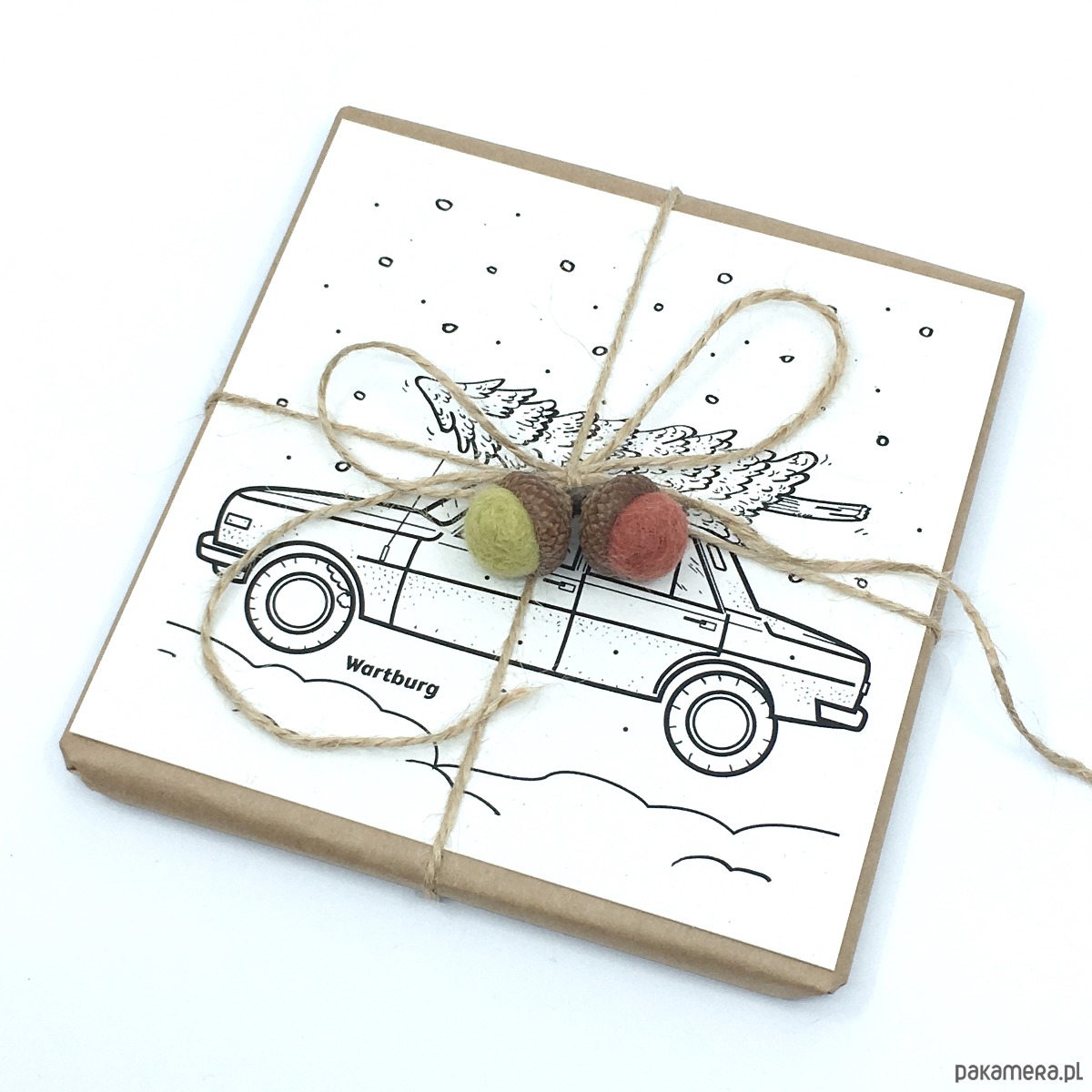 10 kwadratowych kart wydrukowanych na papierze 350 g pochodzącym w 100% z makulatury. Całość składana ręcznie w pudełko. Oryginalne opakowanie, zaprojektowane ze starannością dla młodych odbiorców świata :-)