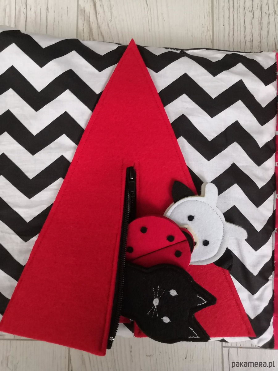 Wszystkie strony książeczki są szeleszczące, co wpływa pozytywnie na rozwój słuchu u dziecka. Handmade. Książeczka uszyta ręcznie z bezpiecznych materiałów: filc i bawełna.
