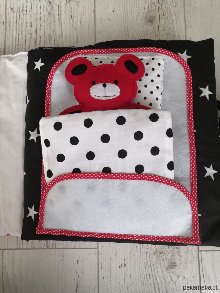 Na początek: misiu, który ma swoje łóżeczko. Dziecko widzi, że tak jak ono miś także spędza większość czasu na śnie.