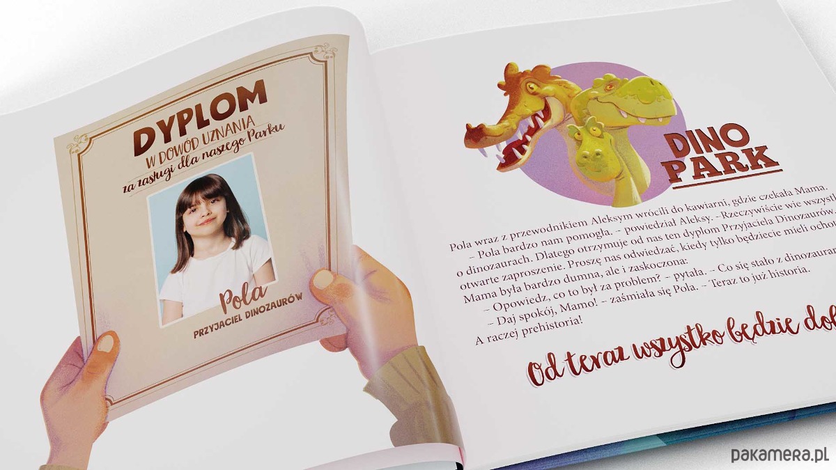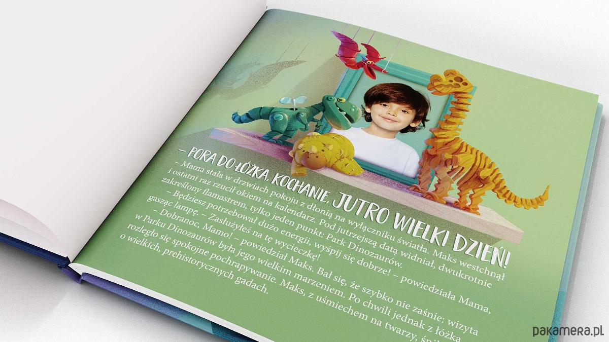 Wspaniała opowieść z Twoim dzieckiem w roli głównej. Jego zdjęcie zostanie ręcznie wkomponowane w piękne ilustracje na każdej rozkładówce i okładce, a jego imię będzie przedmiotem narracji. Dzięki temu dziecko otrzyma bajkę o sobie, rozwinie wyobraźnię i nauczy wykazywać się samodzielnością. Podaruj mu wyjątkowy prezent, który zostanie z Wami na lata.