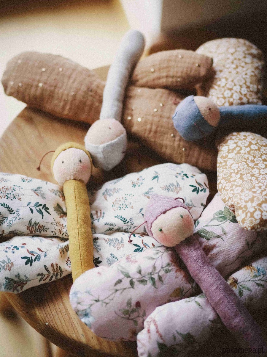 Do stworzenia lalki wykorzystuje się tylko naturalne materiały : runo owcze, trykot bawełniany, len, bawełna.