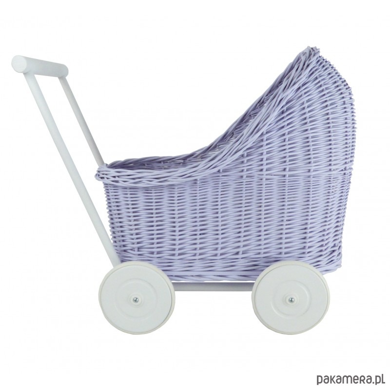 Proponujemy Państwu wiklinowe wózki dla lalek w 5-ciu kolorach z białymi kółeczkami.