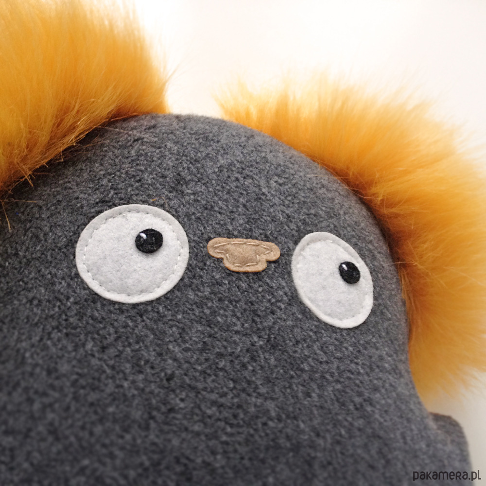 Frelka Artur zrobiona jest z miękkiego, grubego, szarego polaru, a uszyska ma ze sztucznego długowłosego futerka. Mierzy mniej więcej 20cm (wzrost podajemy bez uszu). Wypchana hypoalergicznym poliestrowym puchem i materiałowymi ścinkami – resztkami z naszej produkcji. Bo tak ekologiczniej jest ?