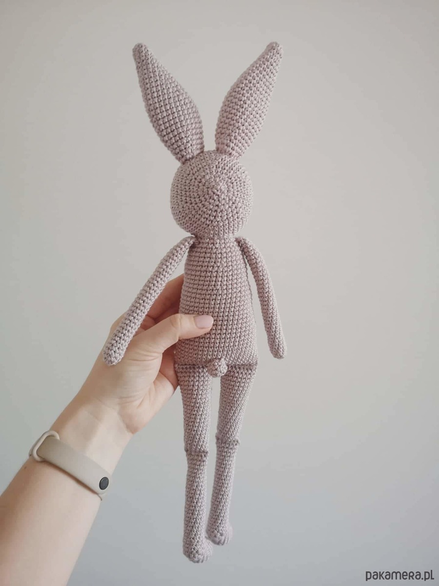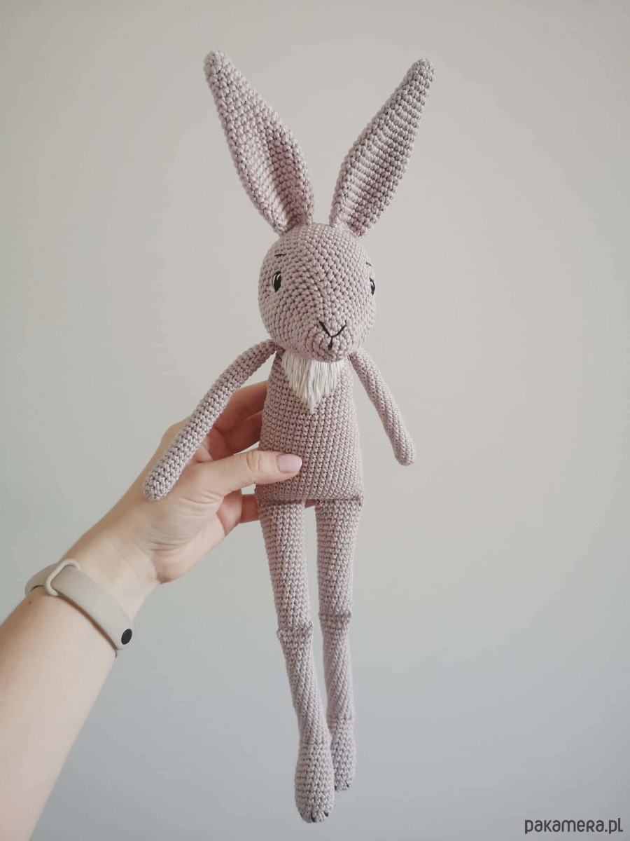 Ręcznie wykonany Królik na szydełku techniką amigurumi w bardzo niejednoznacznym kolorze trochę szary, trochę beżowy, wg mnie to kolor kakao z mlekiem :)