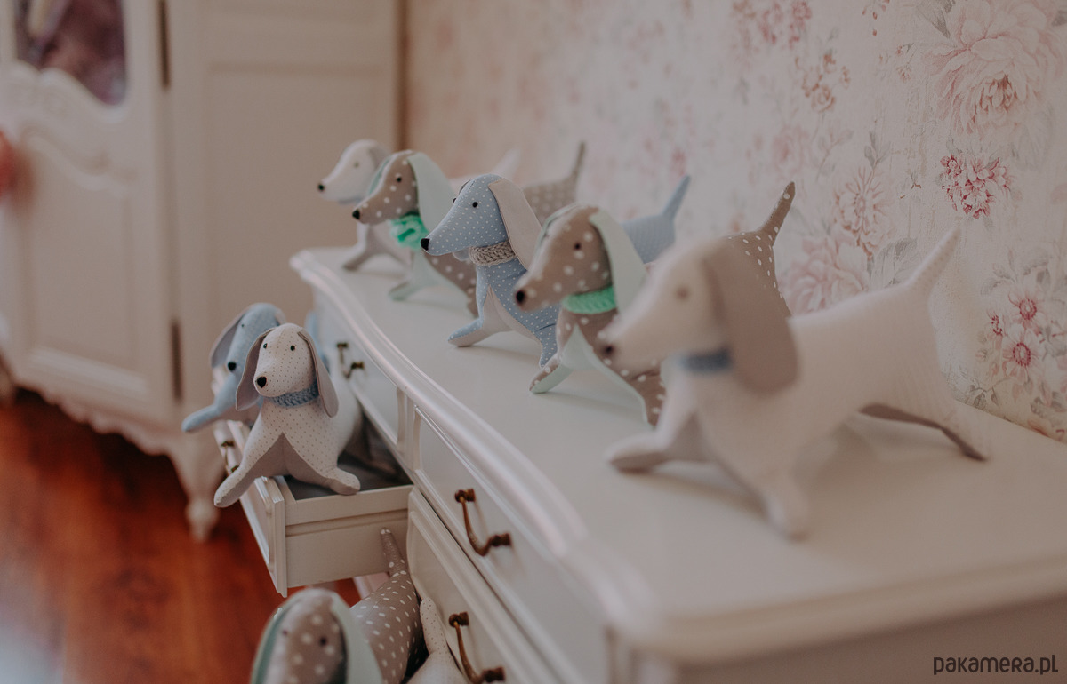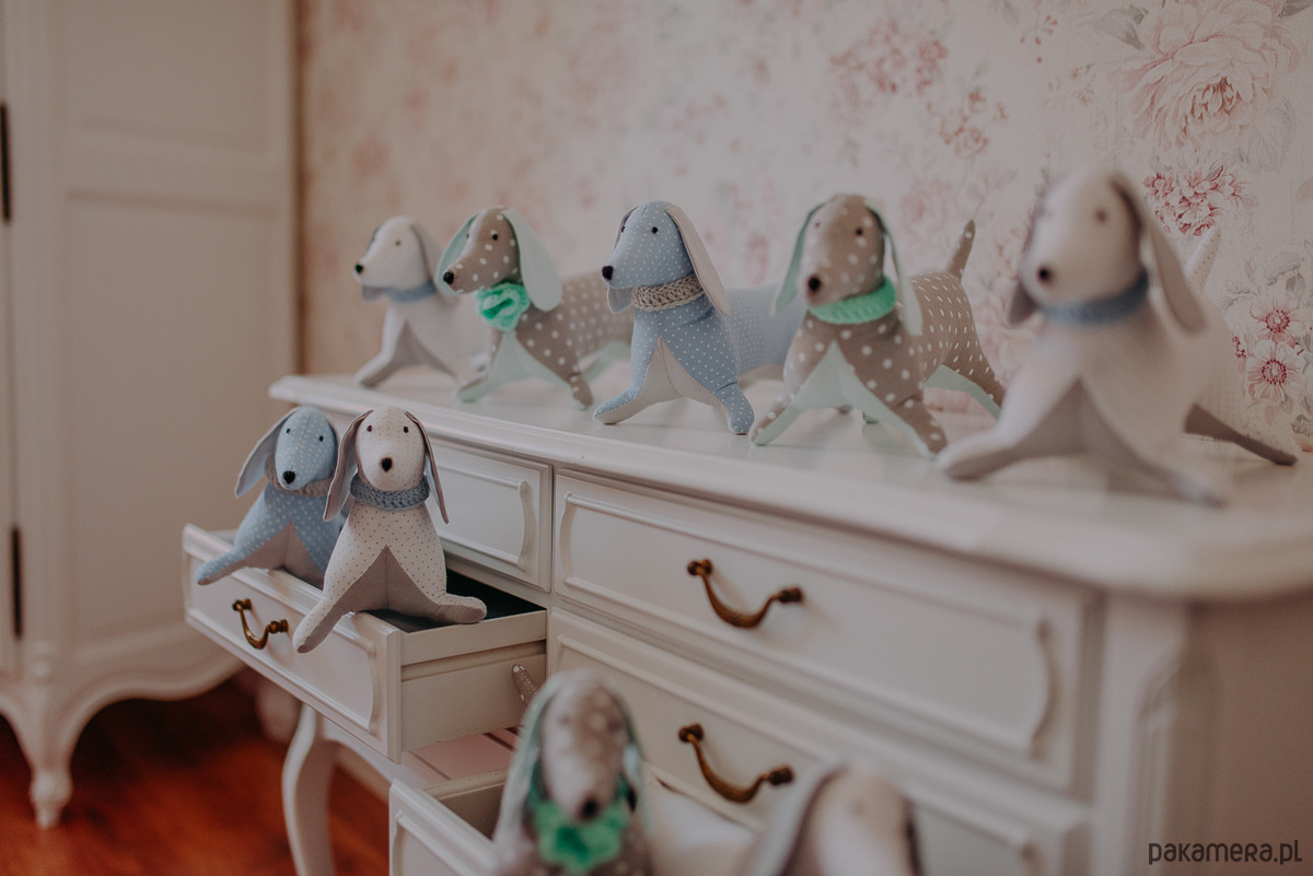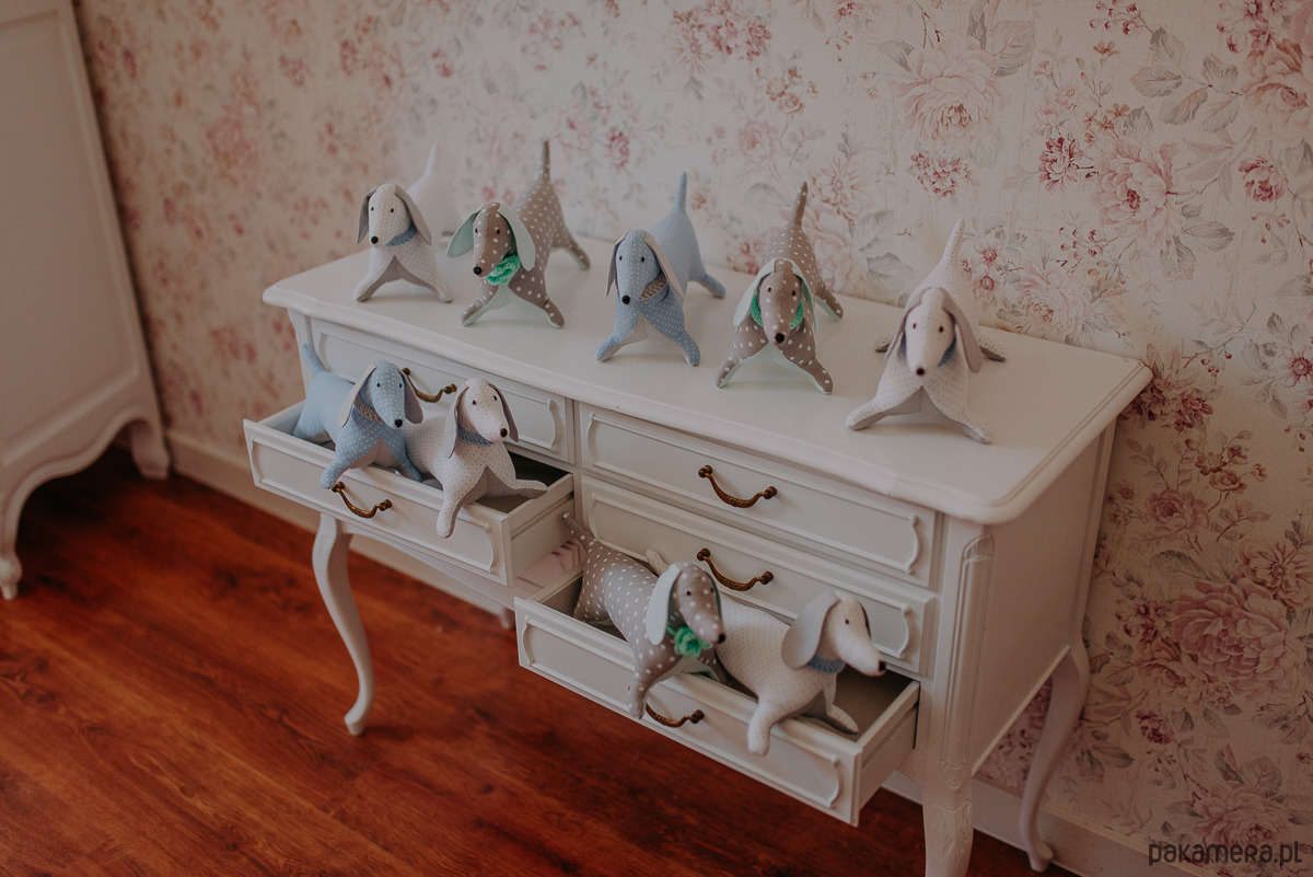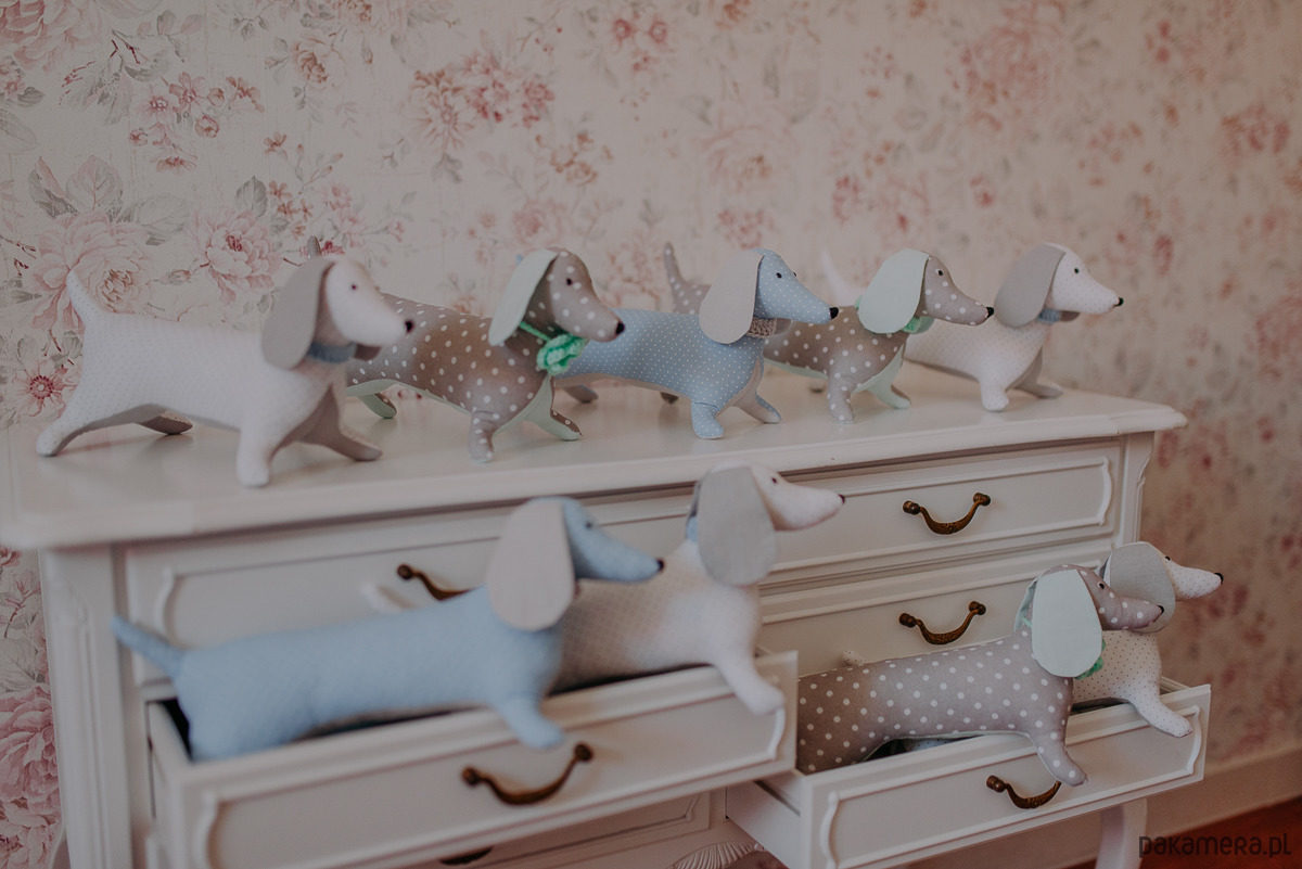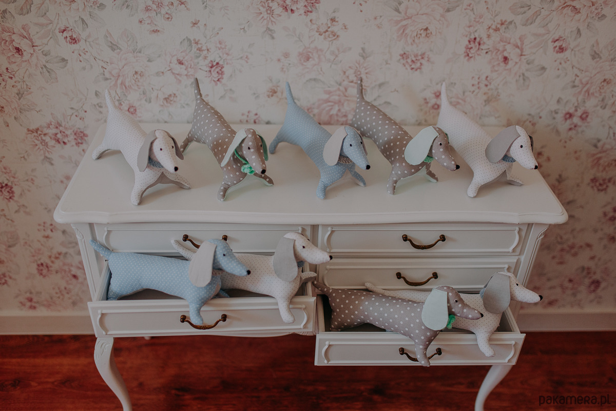 Te urocze jamniczki zachwycają każdym najdrobniejszym detalem. Wykonane są z tkaniny bawełnianej w dwóch kolorach. Gładkiej bawełny oraz w drobne groszki. Ich szyję zdobi obróżka wykonana na szydełku. Oczka oraz nosek są ręcznie wyhaftowane. Maskotka ta sprawdzi się idealnie jako propozycja na prezent dla każdego miłośnika tych wspaniałych zwierzątek.