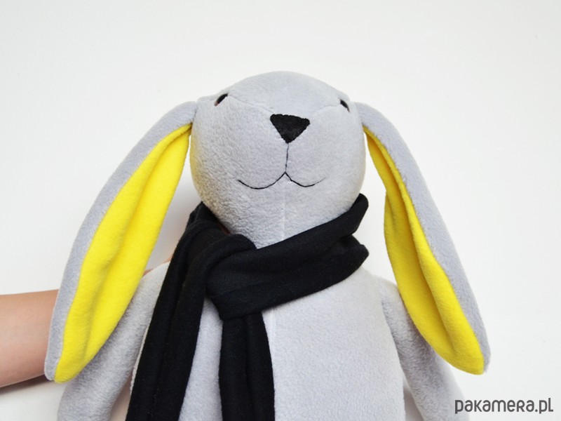 Królik z wyszytym imieniem ( możliwość wyszycia maxymalnie 3 słów! ) wykonany z miękkiego polaru i dzianiny. Nosek wykonany z czarnego filcu. W komplecie szalik z dzianiny lub bawełny. Wypełnienie antyalergiczne. Królik Lady Stump to idealna przytulanka dla każdego dziecka, a także piękna dekoracja pokoju. Istnieje możliwość uszycia królika w innym kolorze. Wysokość 50cm + ok 20cm uszy. Cena dotyczy 1 sztuki! płatne. Króliki z imieniem na pozostałych aukcjach. Cena dotyczy 1 sztuki!
