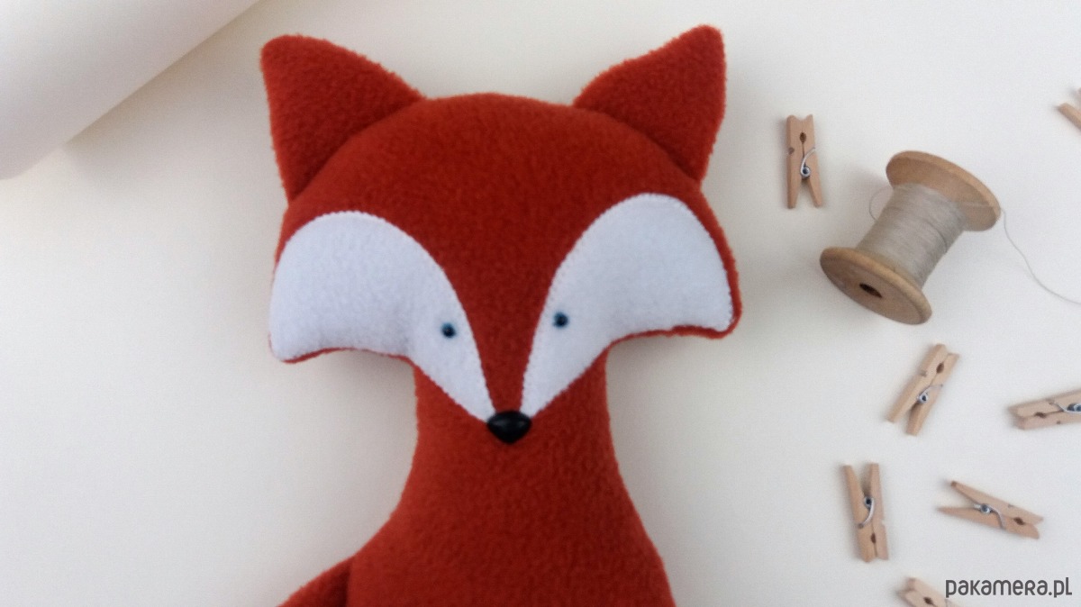Został uszyty z kolorowego polaru, ma około 20 cm, a z ogonem i uszami 27 cm