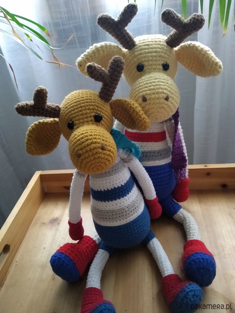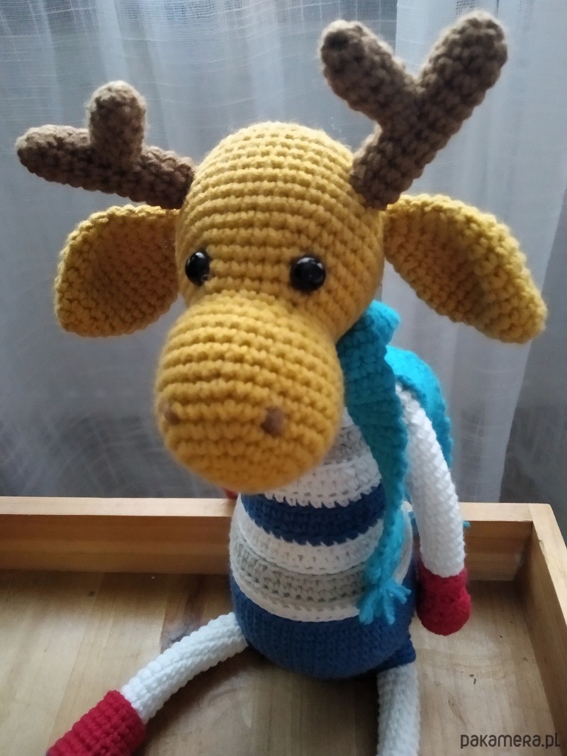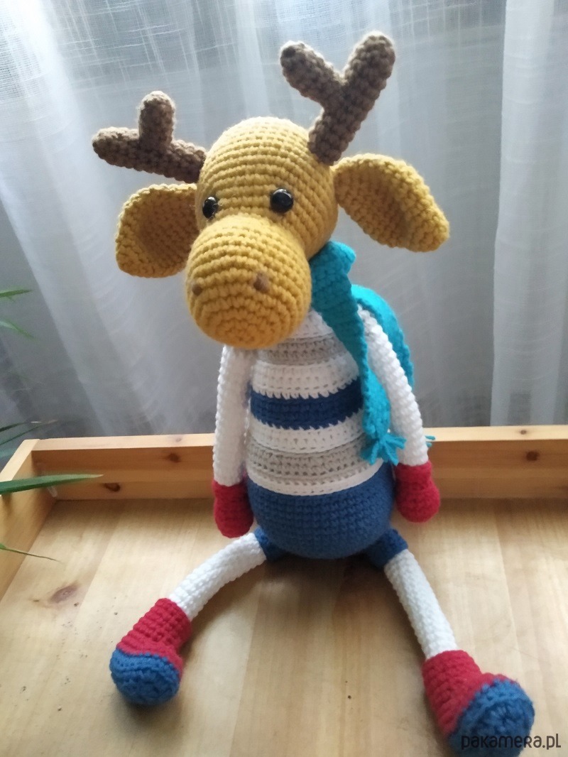 Szydełkowy renifer, idealny na święta. Wykonany na szydełku z bawełny, wypełniony wkładem do poduszek i miłością. Chętnie się nią podzieli. Wysoki na 35 cm.