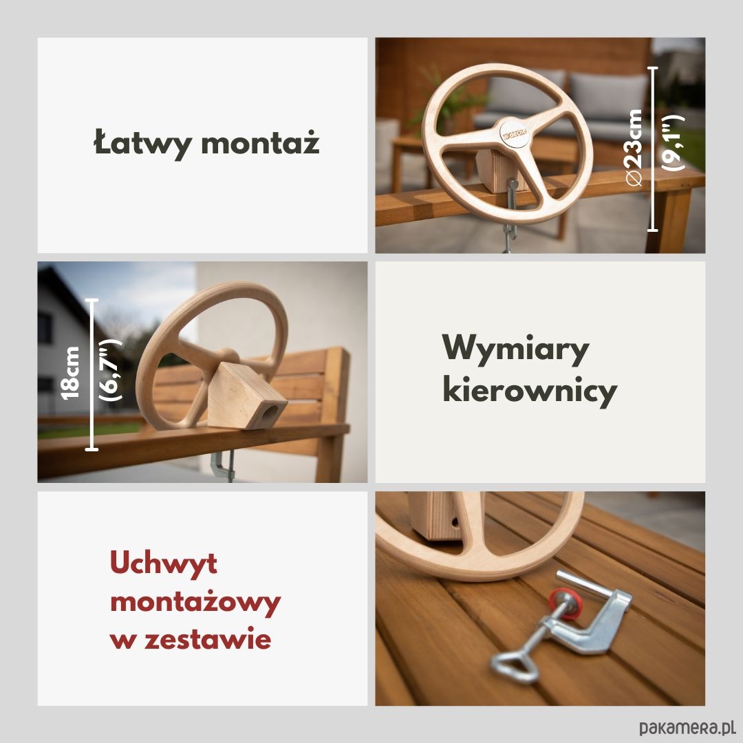 Drewniana kierownica dla dzieci. Doskonały prezent na każdą okazję.