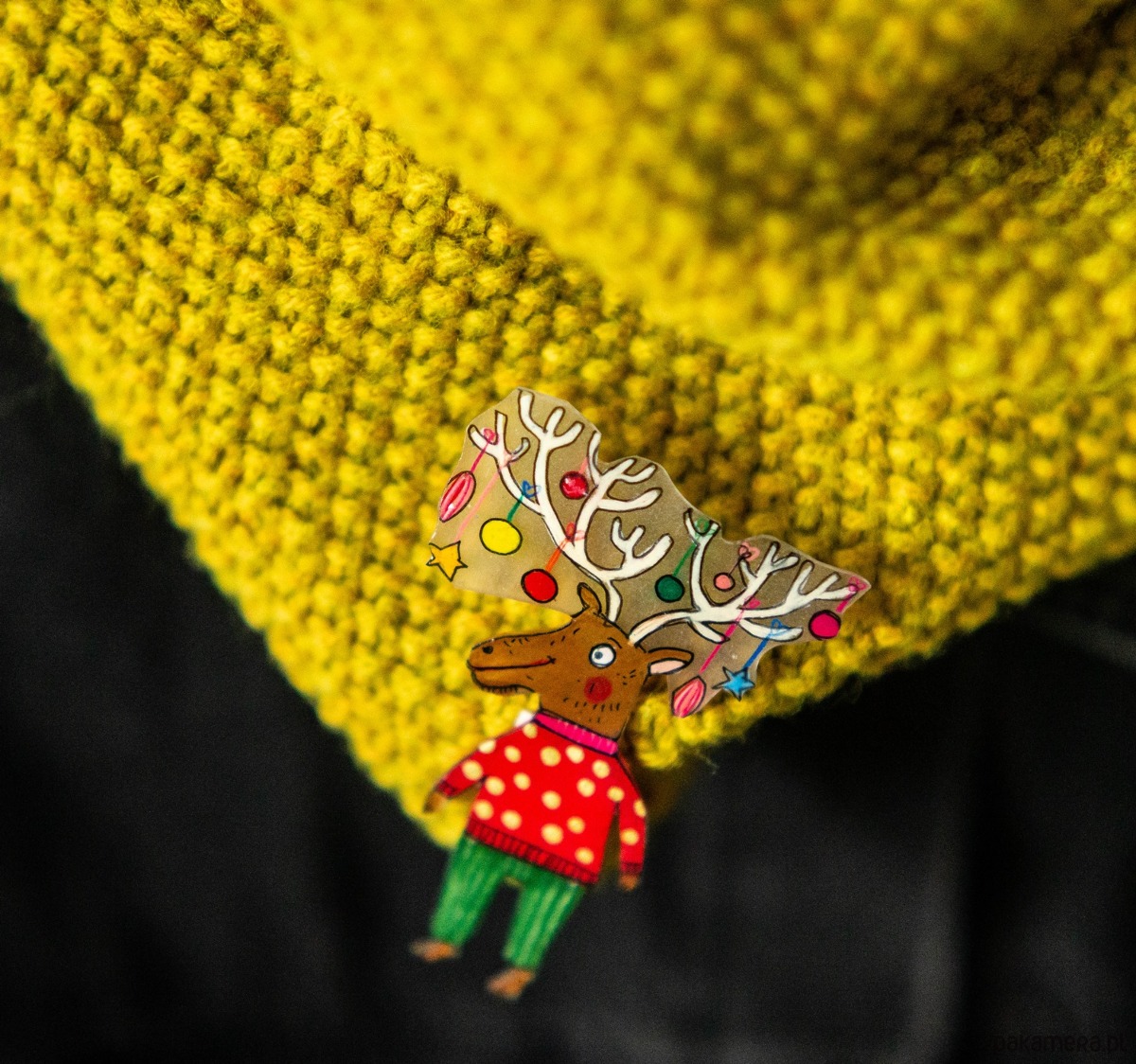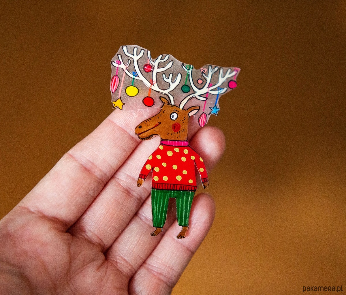 Zabawna broszka ze świątecznym łosiem Bogdanem