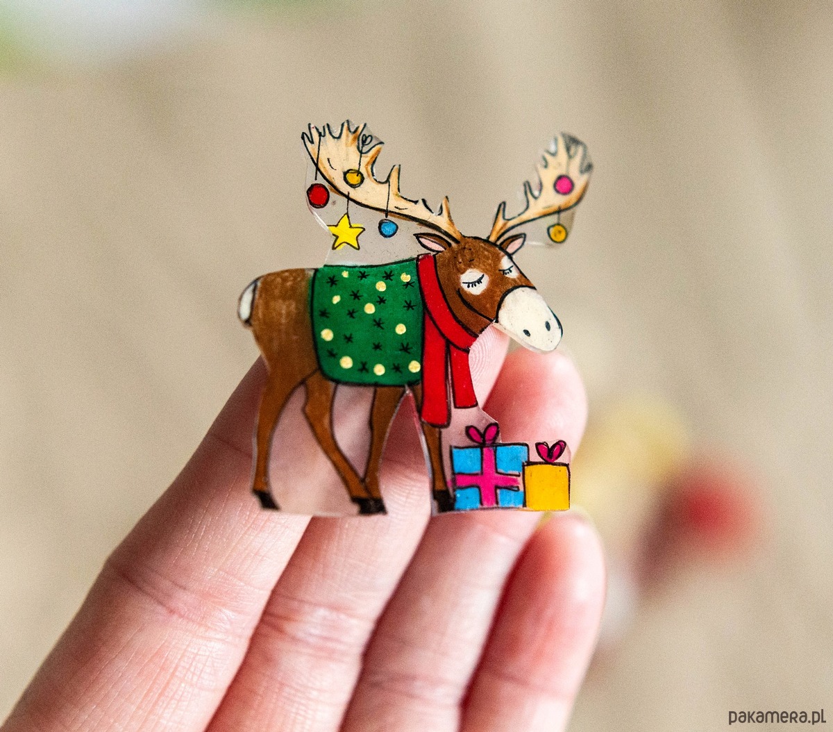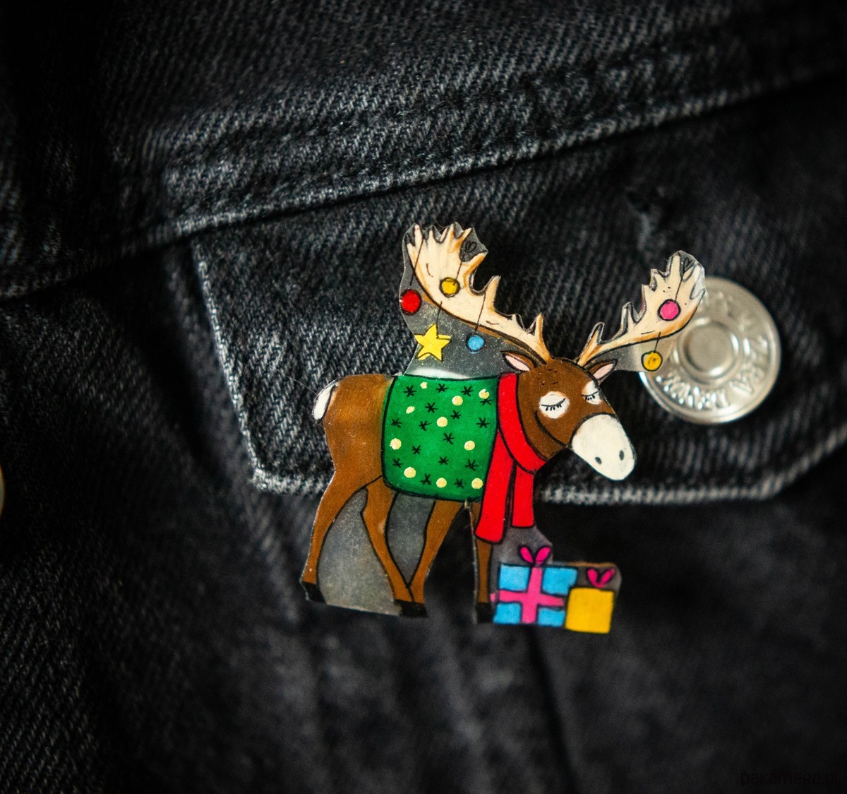 Zabawna broszka ze świątecznym łosiem Bogdanem
