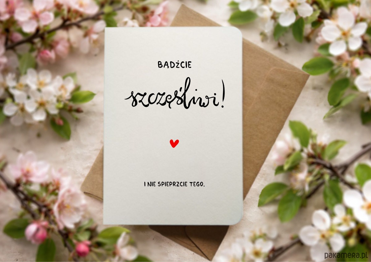 Zabawna kartka ślubna - Bądźcie szczęśliwi i nie spieprzcie tego