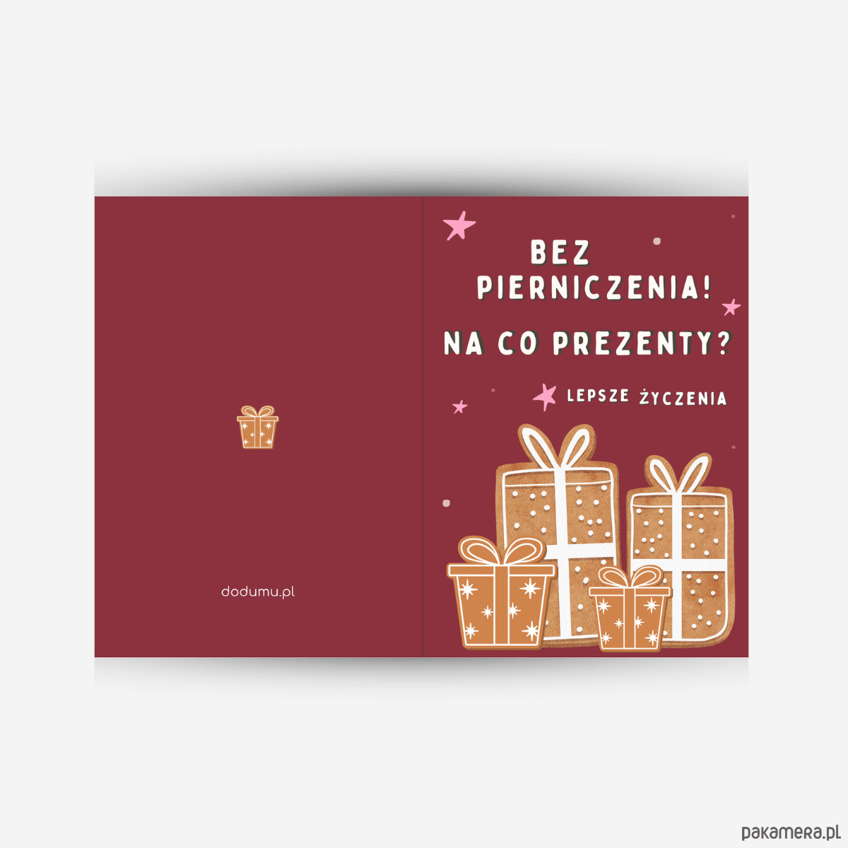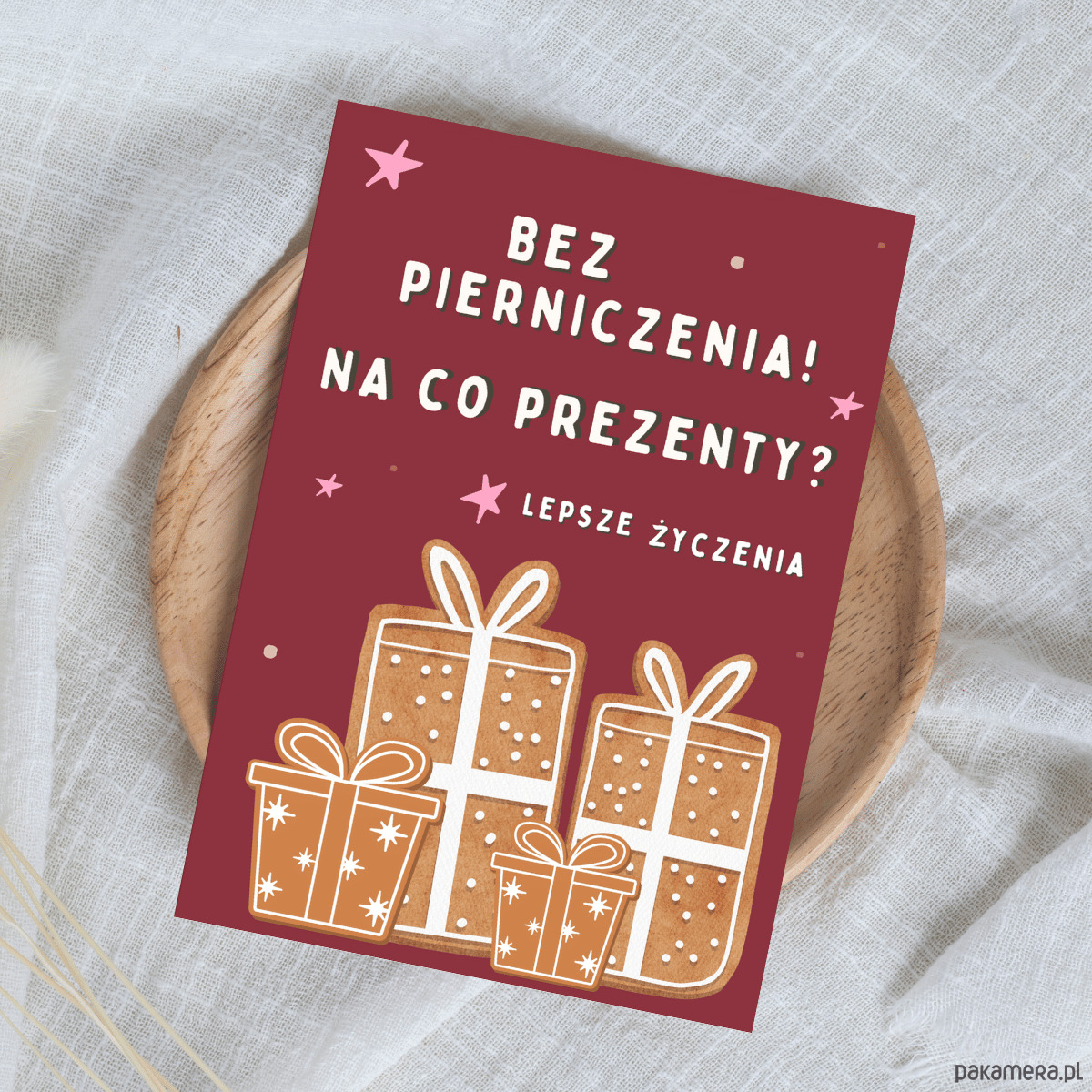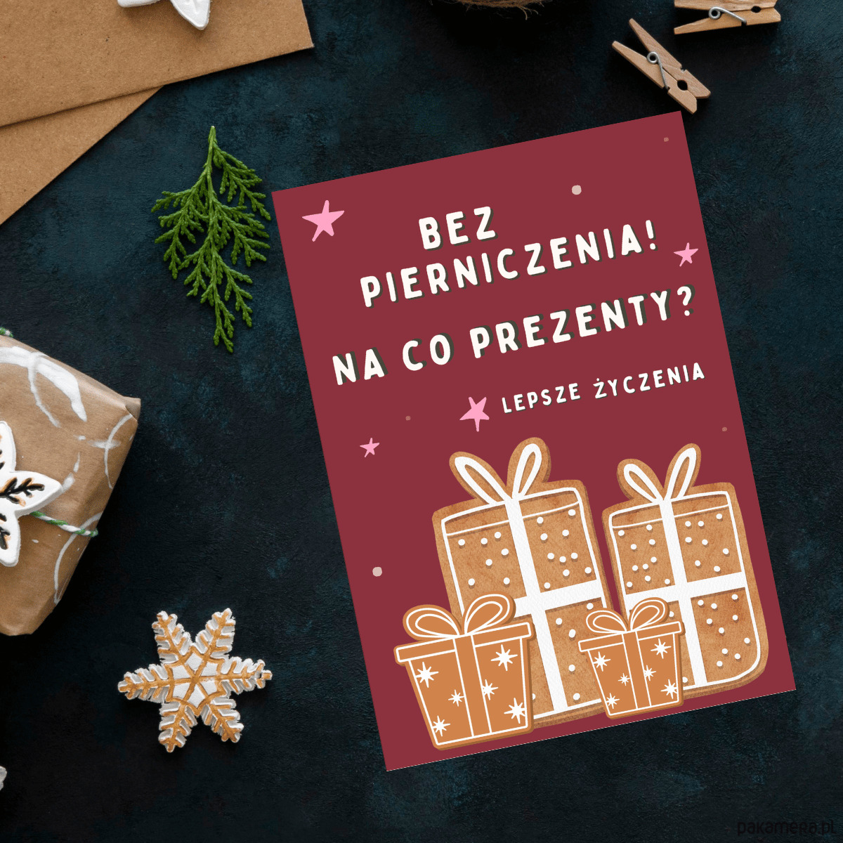 W bożonarodzeniowych kolorach, z pierniczkami w kształcie prezentów, karnet pełen świątecznych akcentów. Z prostą czcionką, która opisuje jak ważne są życzenia, karnet ma w środku masę miejsca do wypełnienia. Pasuje do każdego, bo nie masz człowieka, który z utęsknieniem na pierwszą gwiazdkę nie czeka. Święta to czas, kiedy trzeba wzruszać miłym gestem, szczerymi życzeniami i dzielić się świąteczną radością z bliskimi osobami. Niechaj więc bożonarodzeniowa magia zamknięta w tym karnecie rozejdzie się po całym świecie. Dla rodziców, dziadków, wujostwa, kuzynostwa, siostry, brata, szefa, przyjaciółki, kolegów z pracy, czy bliskiego znajomego, kartka z życzeniami, czyli coś prostego, ale jakże wyjątkowego.
