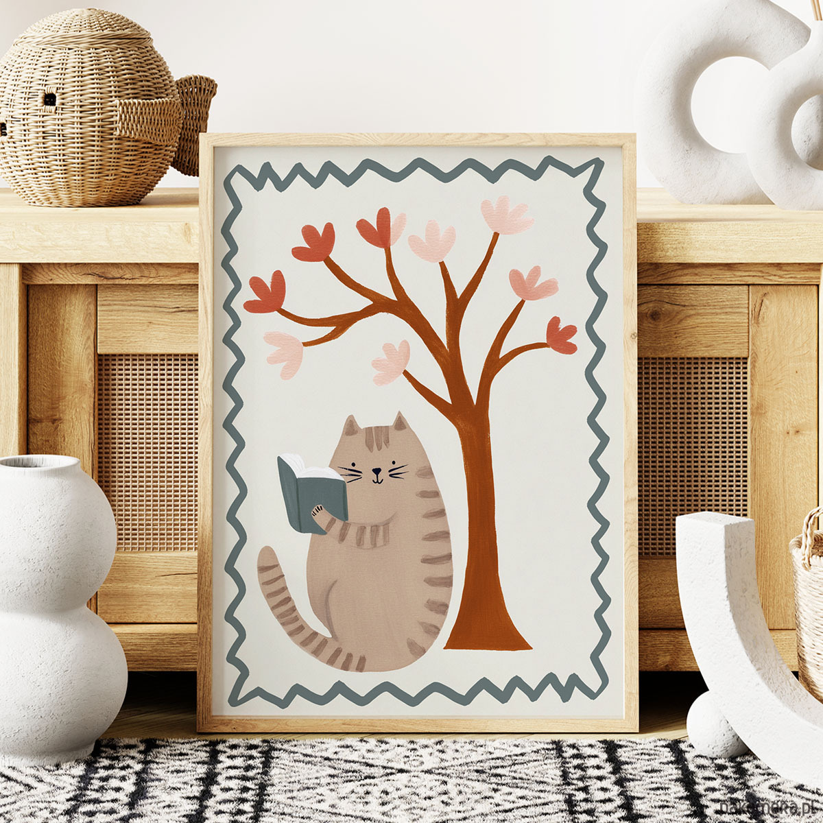 Zaczytany Kot - plakat dziecięcy