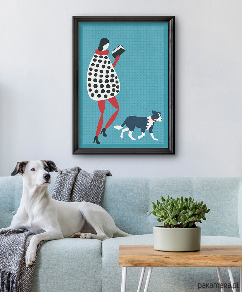 Spacer z psem i czytanie to dwie rzeczy, które niezawodnie poprawiają nastrój. Tak właśnie powstał nasz plakat Zaczytany spacer - łącząc to, co najlepsze w graficznej ilustracji. Pięknie prezentuje się we wszelkich wnętrzach wypełnionych książkami i psami.
