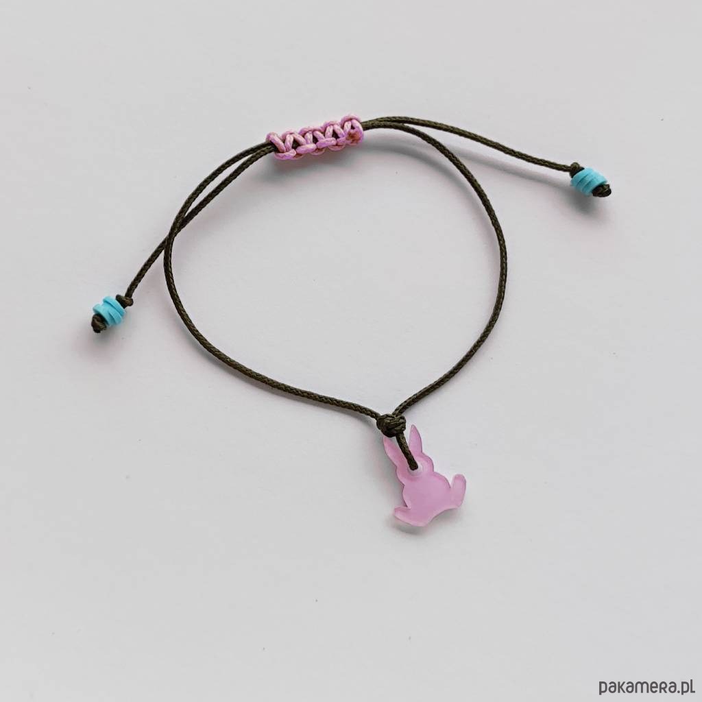 ZAJĄC bransoletka- zabawny dodatek. Ciekawy dodatek przykuwają uwagę i zaskakuje wzornictwem. Taka bransoletka sprawi, że każda stylizacja nabierze niepowtarzalnego, fantazyjnego charakteru. Bransoletka wykonana jest z: tworzywo sztuczne,koraliki Katsuki (średnicy 4mm), ozdobny sznurek.Długość zawieszki 1,5 cm. Szeroko - 1,3 cm.
