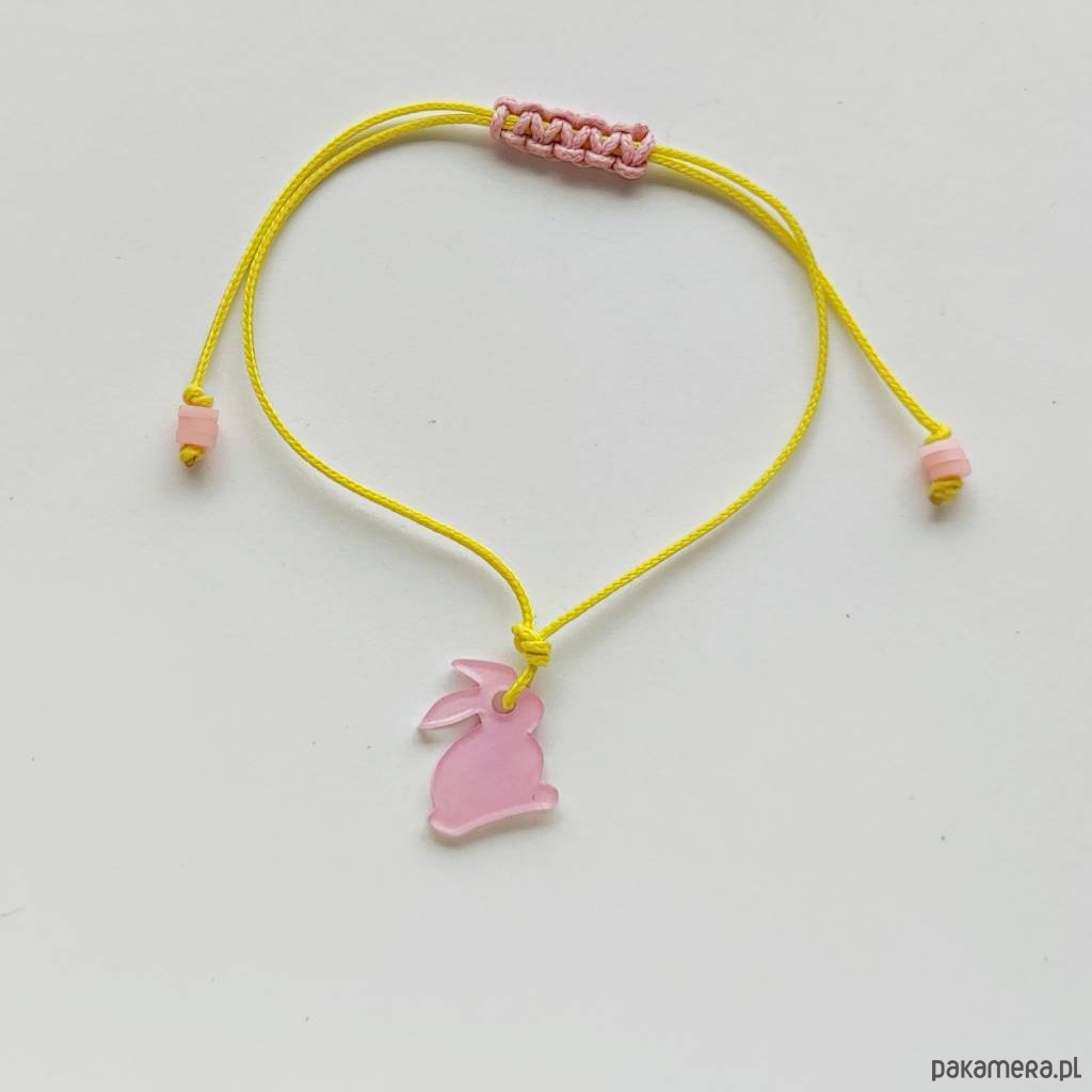 ZAJĄC bransoletka- zabawny dodatek. Ciekawy dodatek przykuwają uwagę i zaskakuje wzornictwem. Taka bransoletka sprawi, że każda stylizacja nabierze niepowtarzalnego, fantazyjnego charakteru. Bransoletka wykonana jest z: tworzywo sztuczne, koraliki Katsuki (średnicy 4mm), ozdobny sznurek. Długość zawieszki 1,7 cm. Szeroko - 1,7 cm.