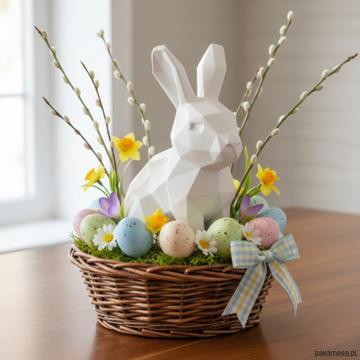 Zając Zajączek Figurka Dekoracja Stojąca na Wielkanoc do Koszyka Stroiku Urocza figurka wykonana za pomocą technologii druku 3D. Stanowi idealną ozdobę na Wielkanoc i dodaje świątecznego uroku każdemu wnętrzu. Dzięki solidnej podstawce możesz ustawić ją na stole, półce lub w koszyku wielkanocnym bez obawy, że się przewróci. Jest to wyjątkowy dodatek, który ożywi Twoje święta i stworzy przytulną, radosną atmosferę.
