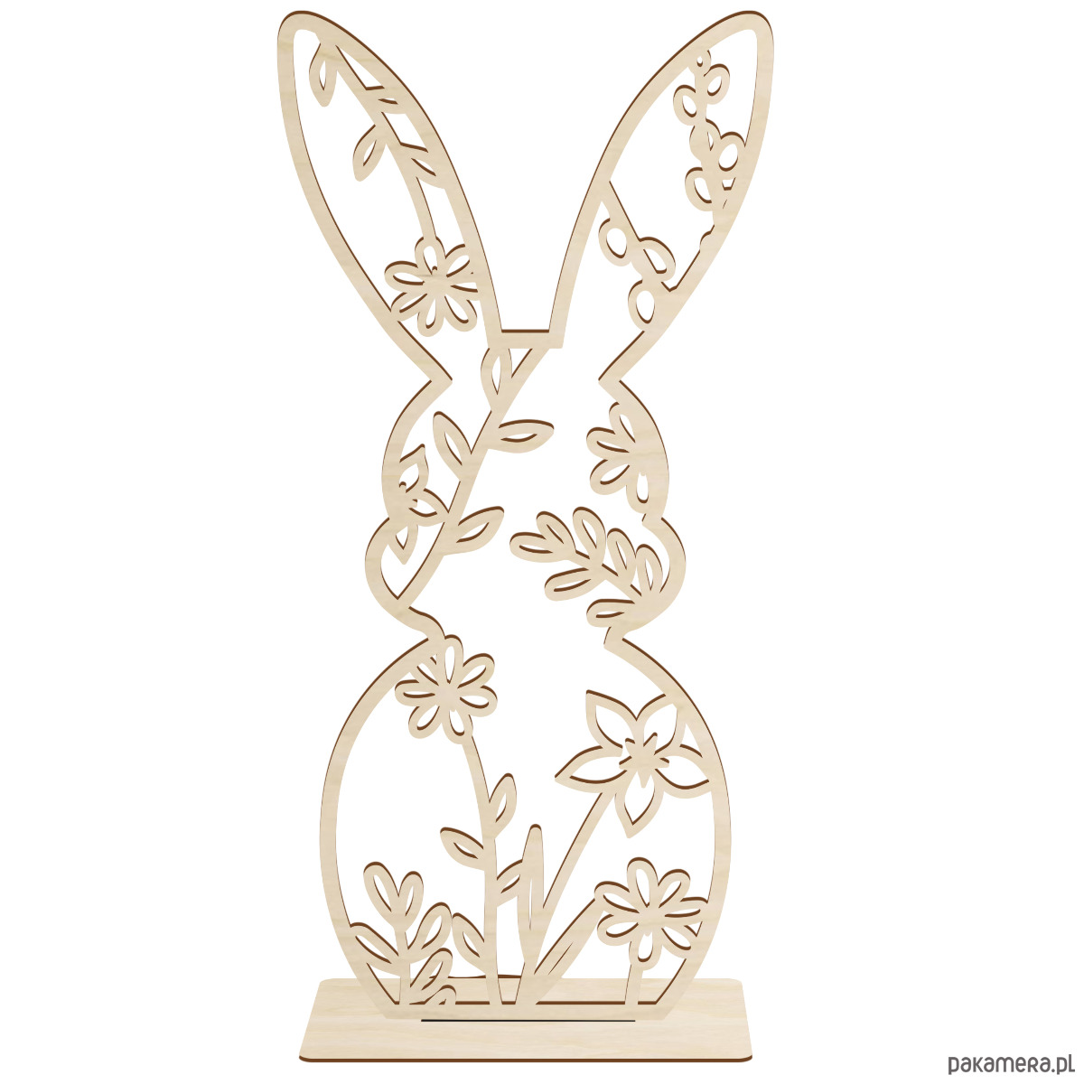 Zając Zajączek Królik wielkanocny duży 20cm drewniany figurka ozdoba 1SZTUrocza figurka wykonana za pomocą technologii laserowej CO2. Stanowi idealną ozdobę na Wielkanoc i dodaje świątecznego uroku każdemu wnętrzu. Dzięki solidnej podstawie możesz ustawić ją na stole, półce lub w koszyku wielkanocnym bez obawy, że się przewróci. Jest to wyjątkowy dodatek, który ożywi Twoje święta i stworzy przytulną, radosną atmosferę.