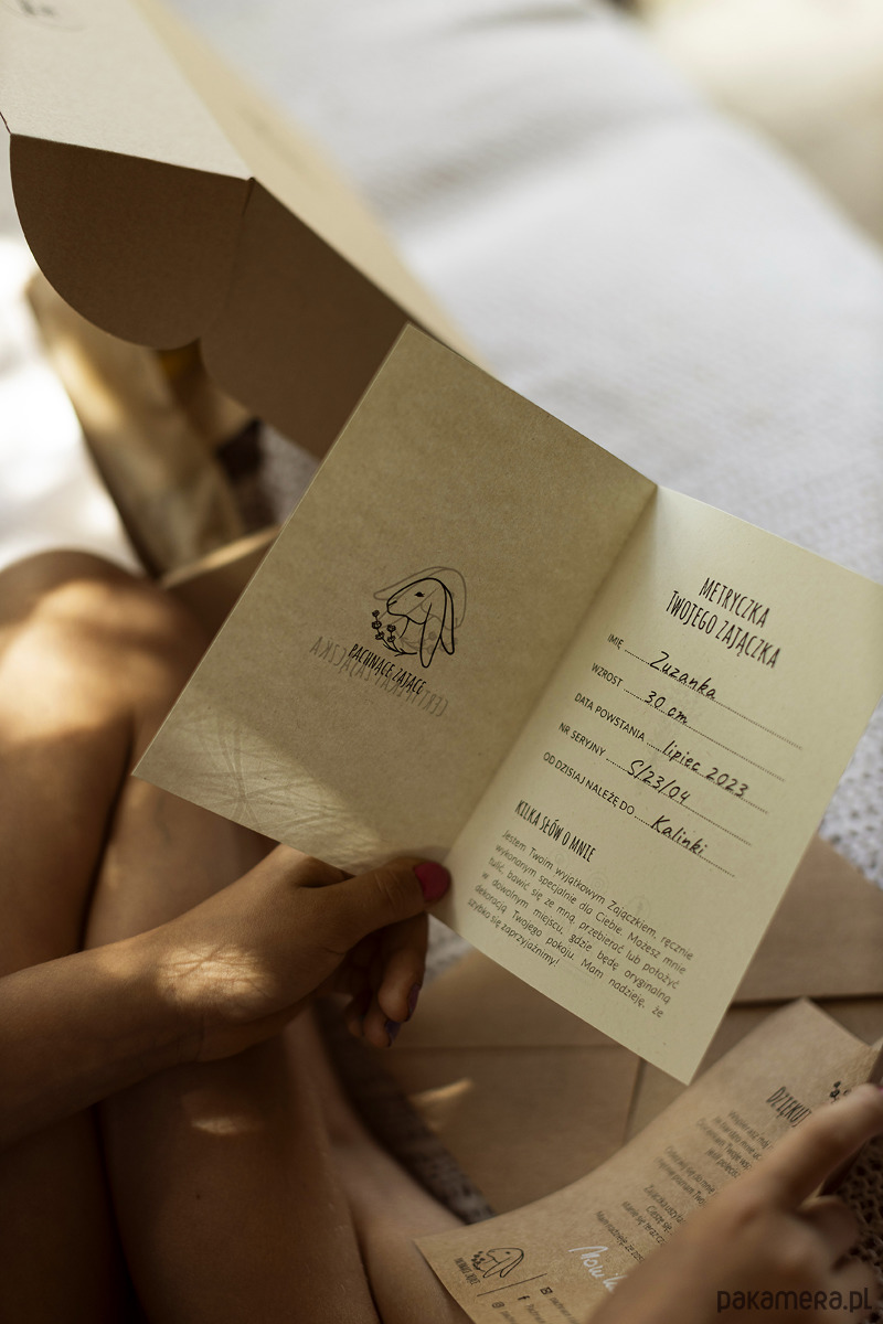 Dodatkowo, każdy z naszych Zajączków posiada własną metryczkę z niepowtarzalnym numerem seryjnym.