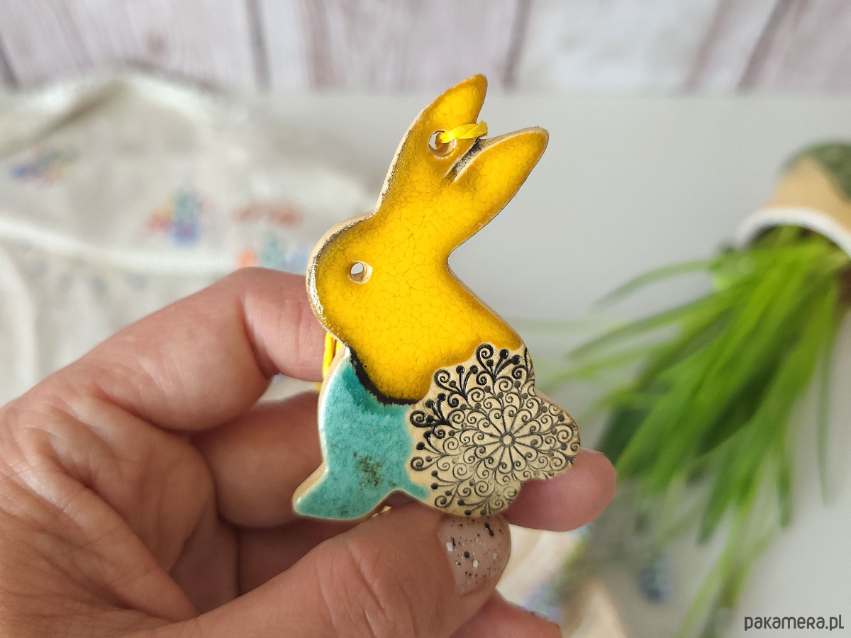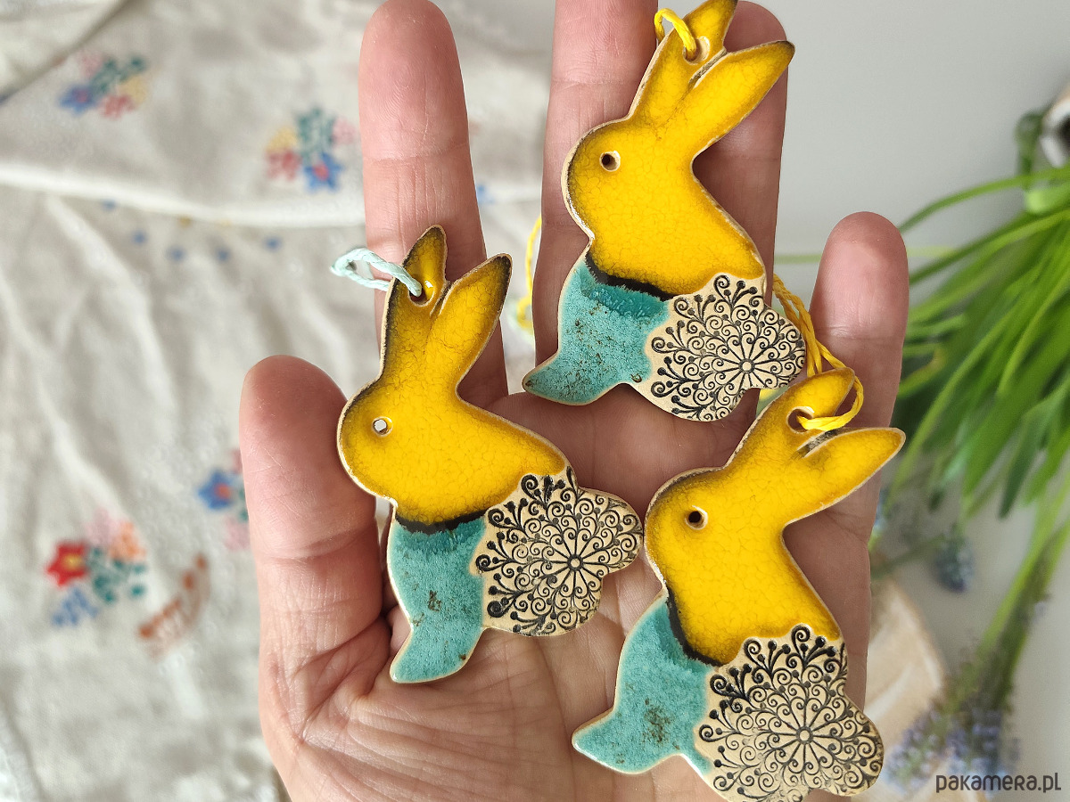 Zające wielkanocne z ceramiki - dekoracje wiszące
