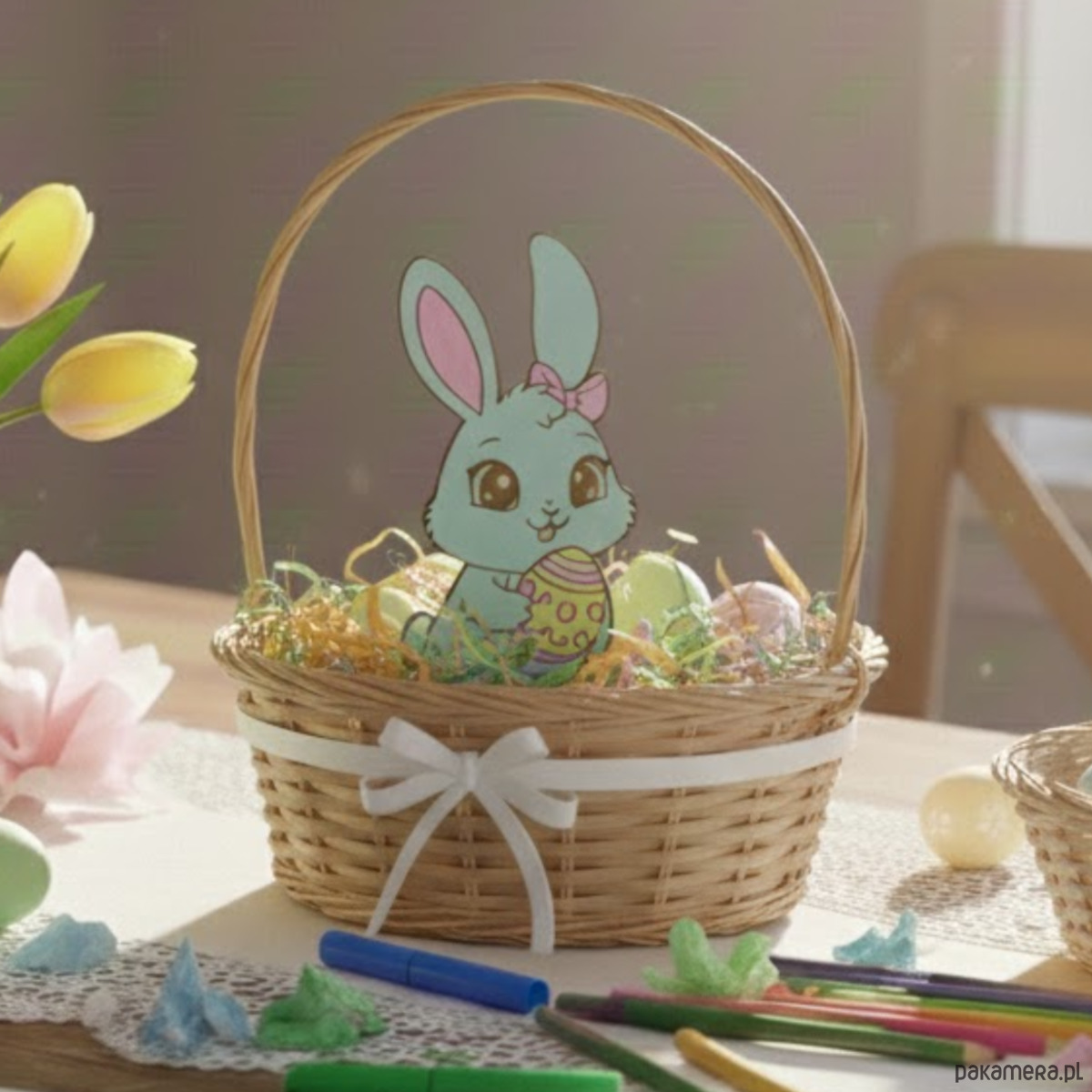 ⭐ Koszyczki wielkanocne – jako uroczy element dekoracyjny wypełniony słodyczami lub dekoracyjnymi trawami.