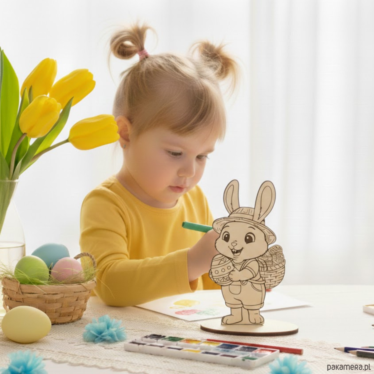 Zajączek Wielkanocny Drewniana Figurka do Malowania Kolorowanka dla Dzieci